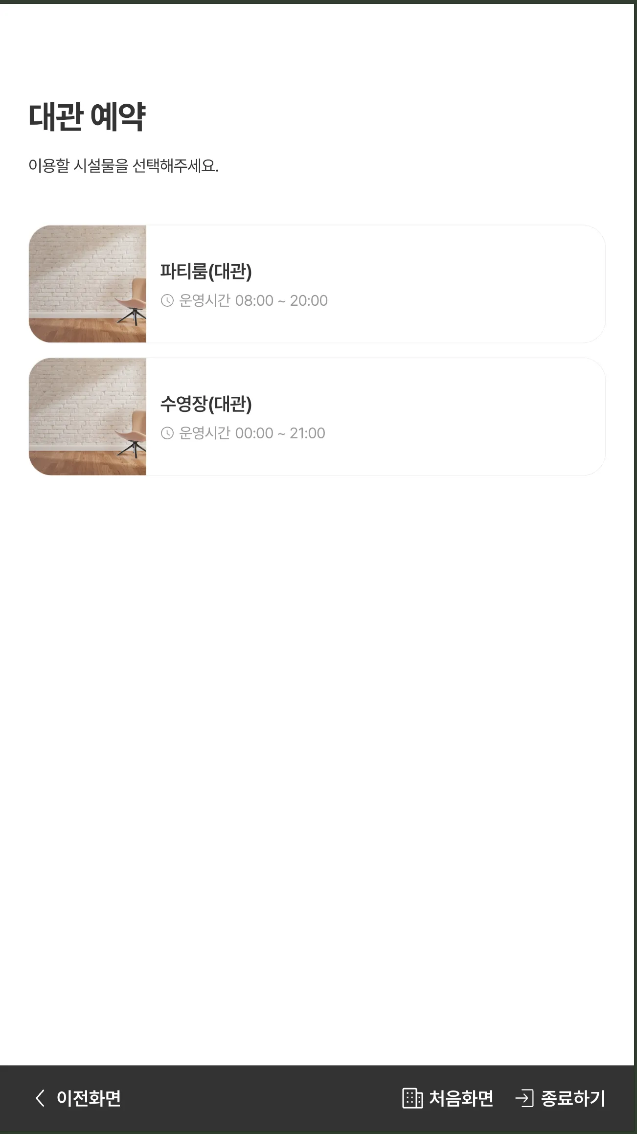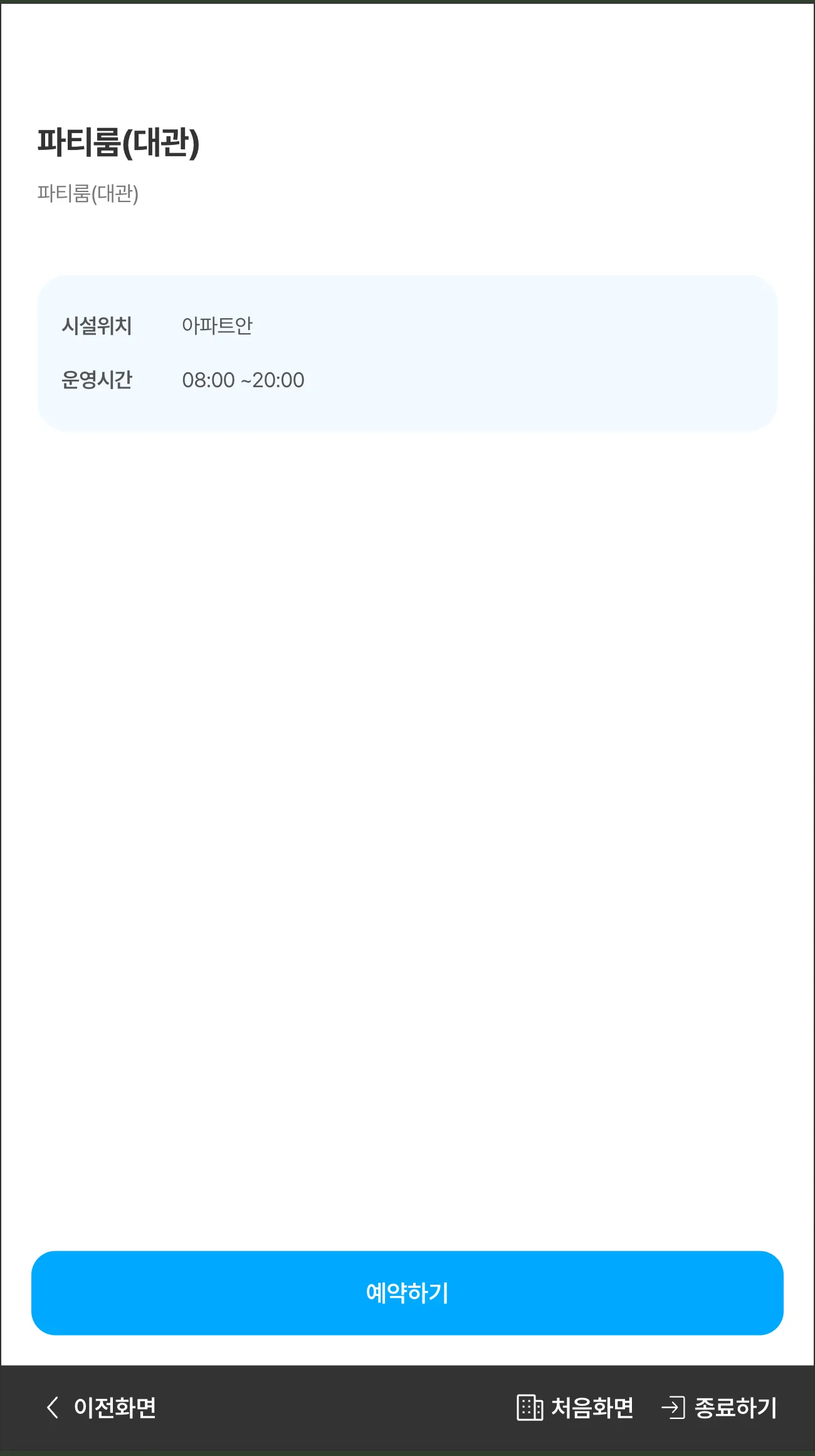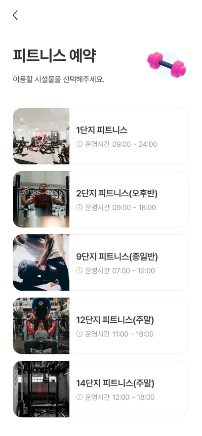 아파트 단지에서 사용가능한 시설을 확인하고 예약을 할 수 있습니다.