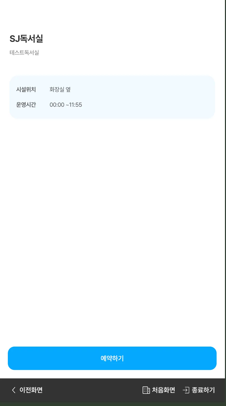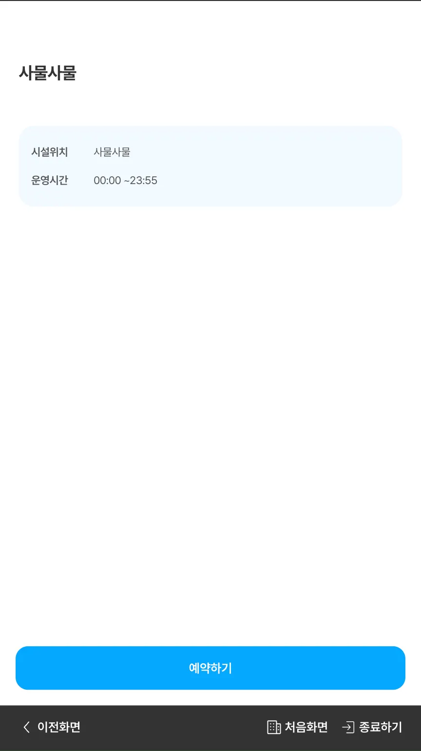 시설 정보 화면에서 [예약하기] 버튼을 눌러 예약을 할 수 있습니다.