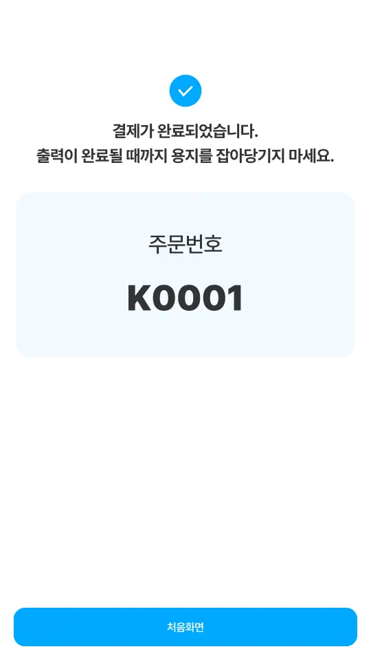 [처음화면] 버튼을 클릭할 경우 키오스크 초기화면으로 이동합니다.