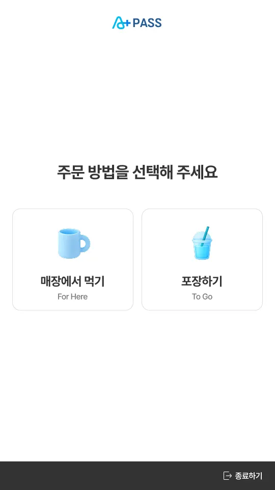 주문 방법은 [매장에서 먹기]와 [포장하기] 중 하나를 선택할 수 있습니다.