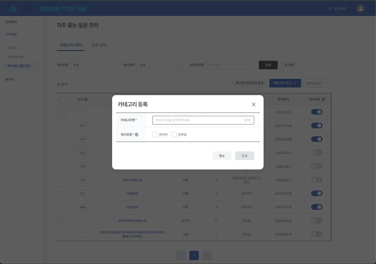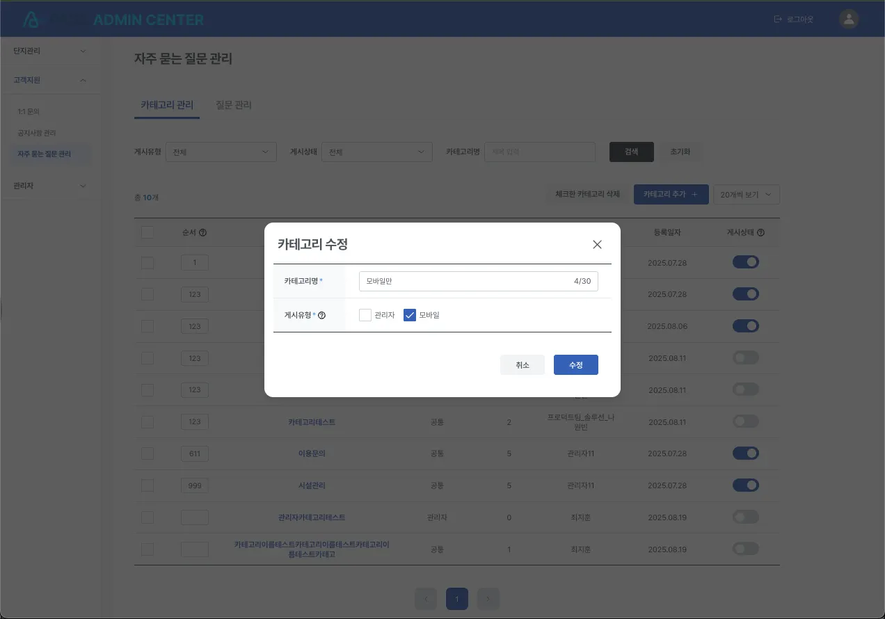 고객 단지의 관리자 목록을 관리 할 수 있습니다.
