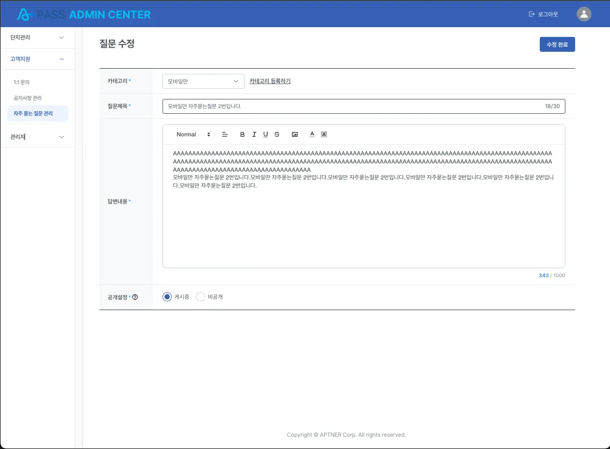 질문에 대한 답변내용을 수정할 수 있습니다.