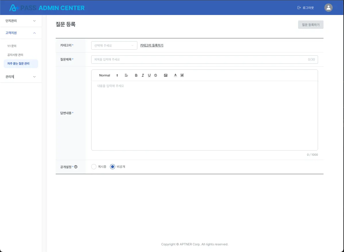 파트너: 고객단지의 외부업체 나 관리 업체 로 관리자 사이트를 관리 할 수 있습니다.
