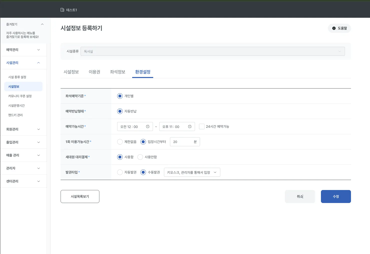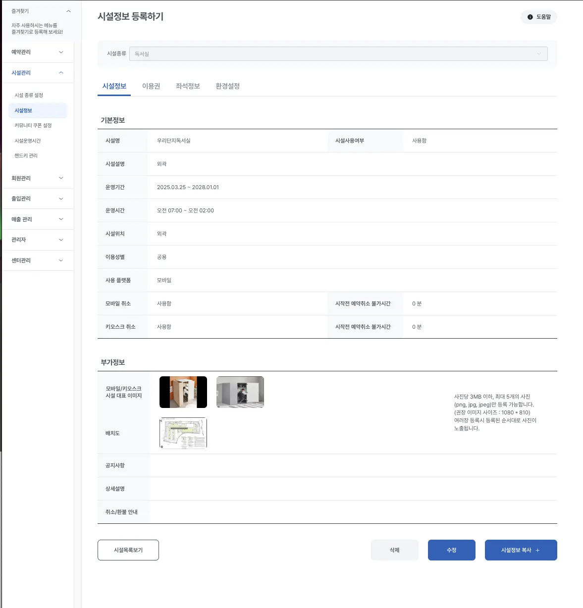 1-1-4. 시설관리 > 시설정보 > 독서실