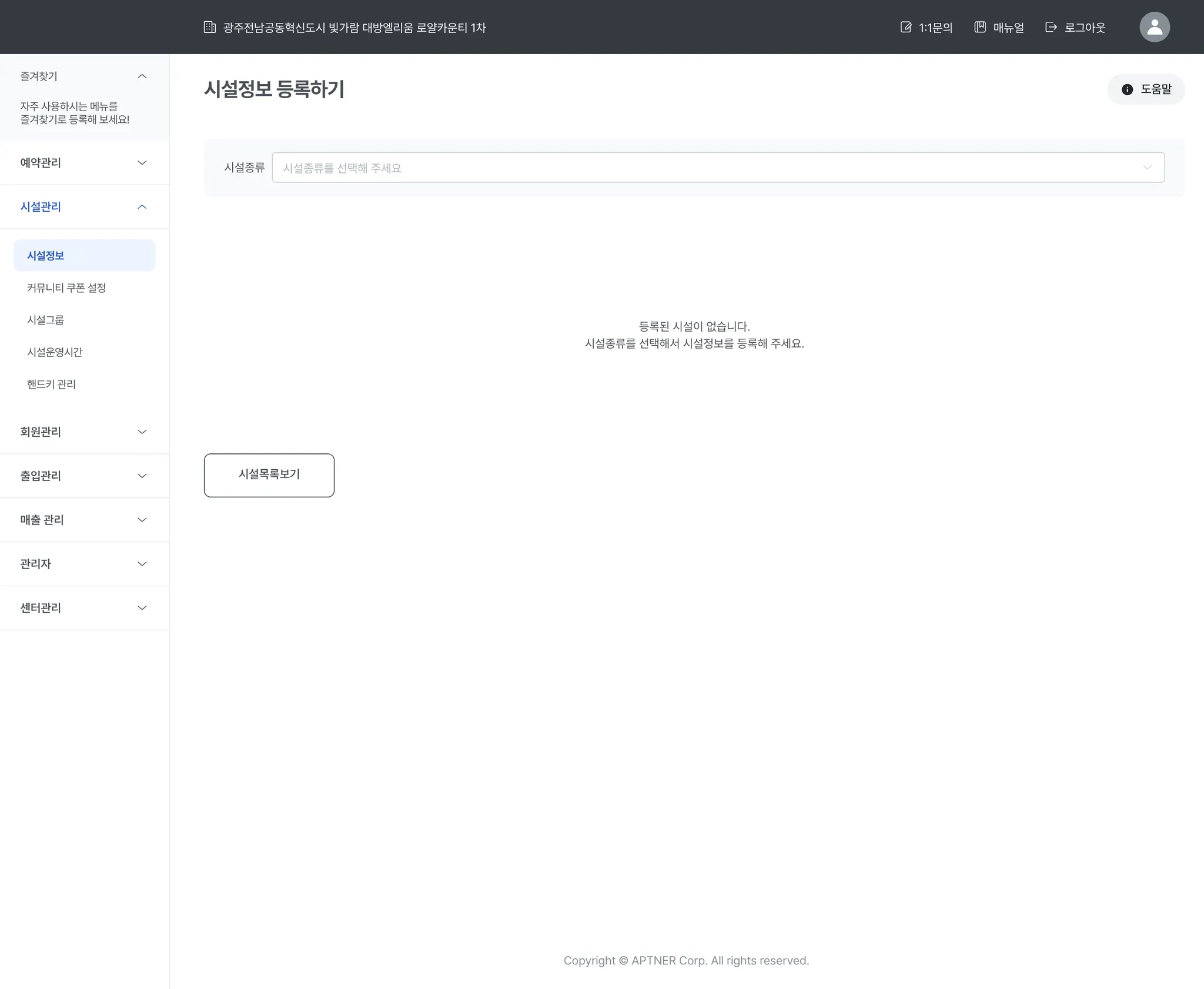 이용권이 등록되면 [이용권]버튼이 생성됩니다. 이용권을 등록하지 않으면 해당 시설을 이용할 수 없으므로 이용권은 반드시 등록해야 합니다.