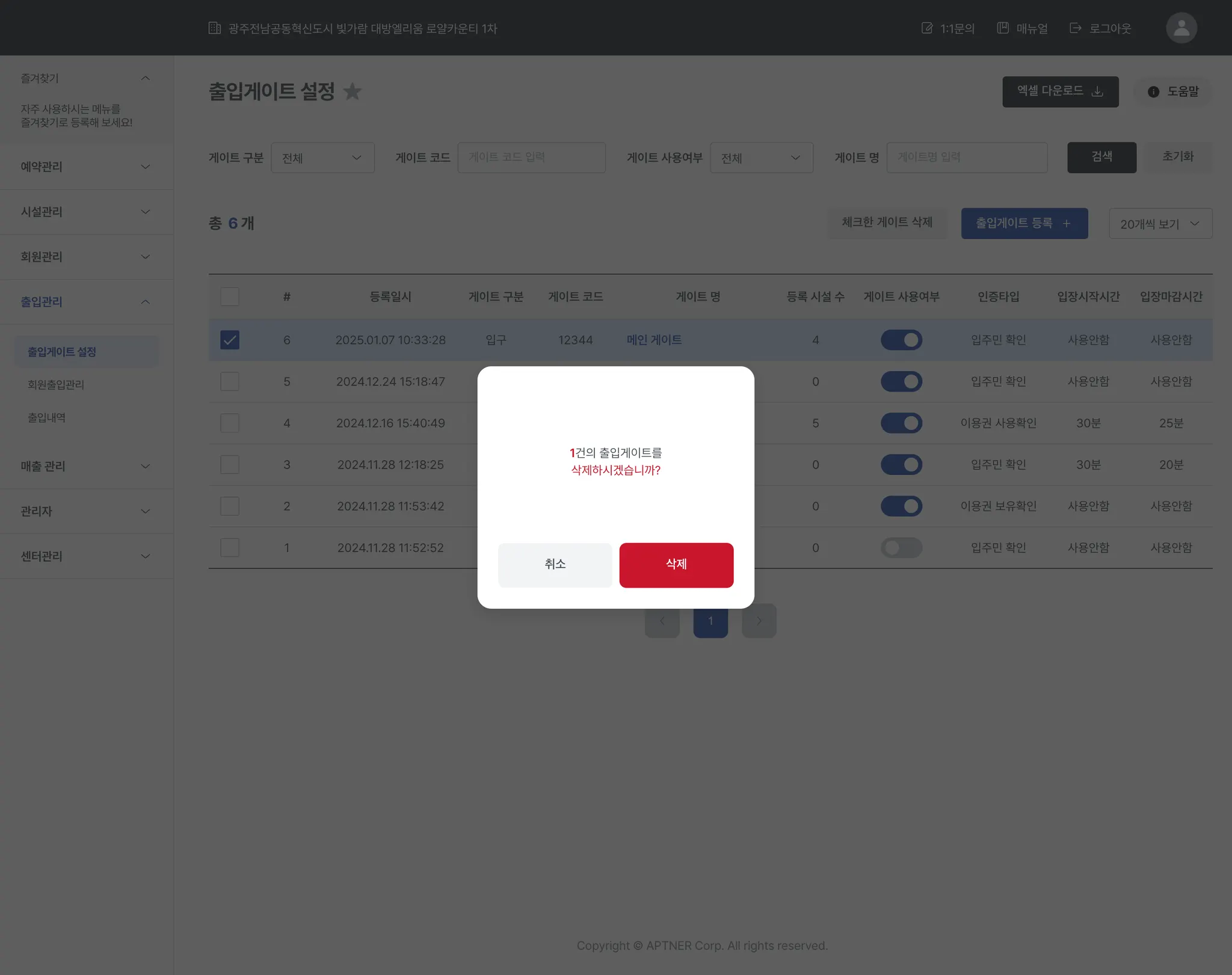 4-1-4. 출입게이트 삭제