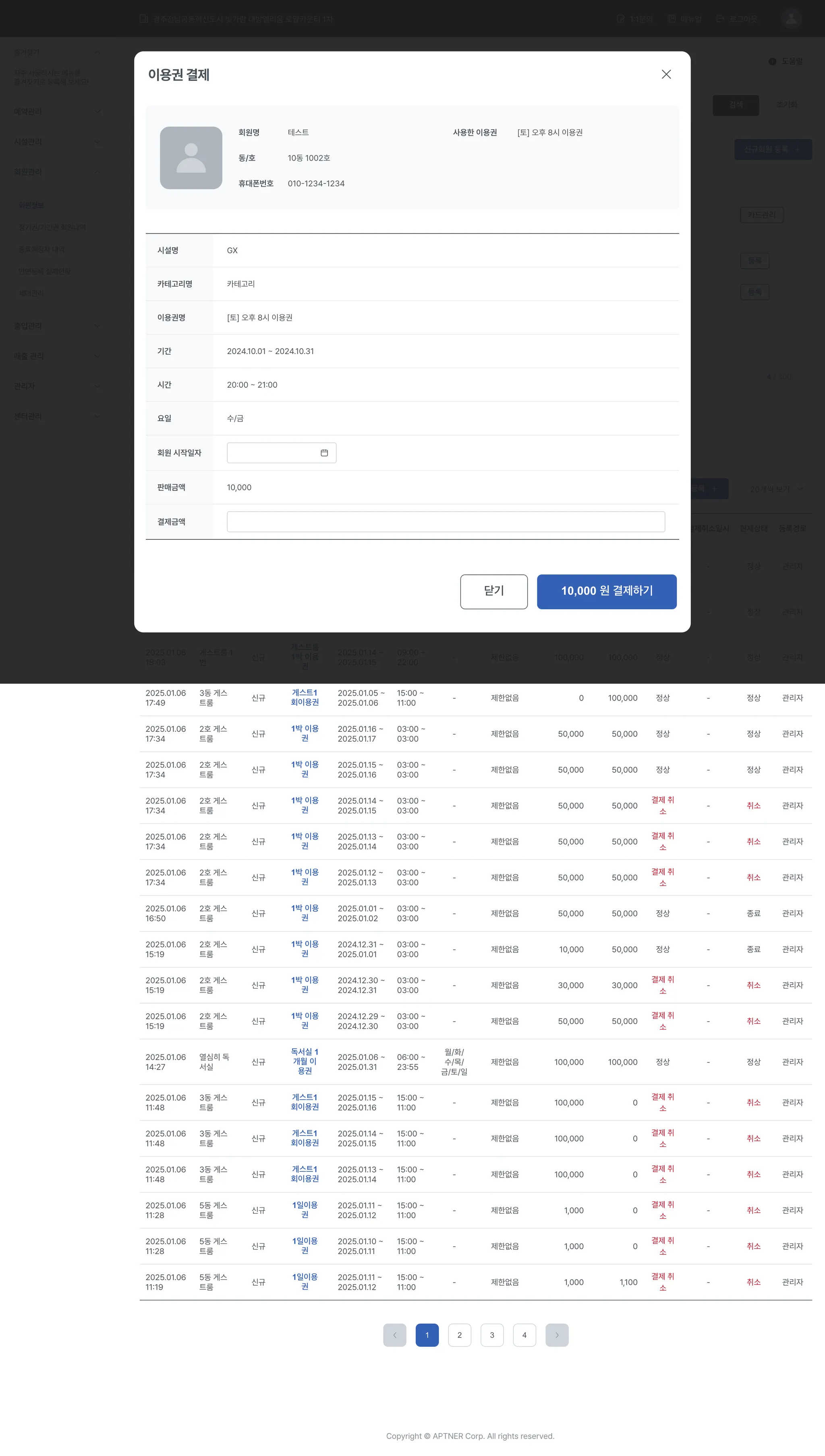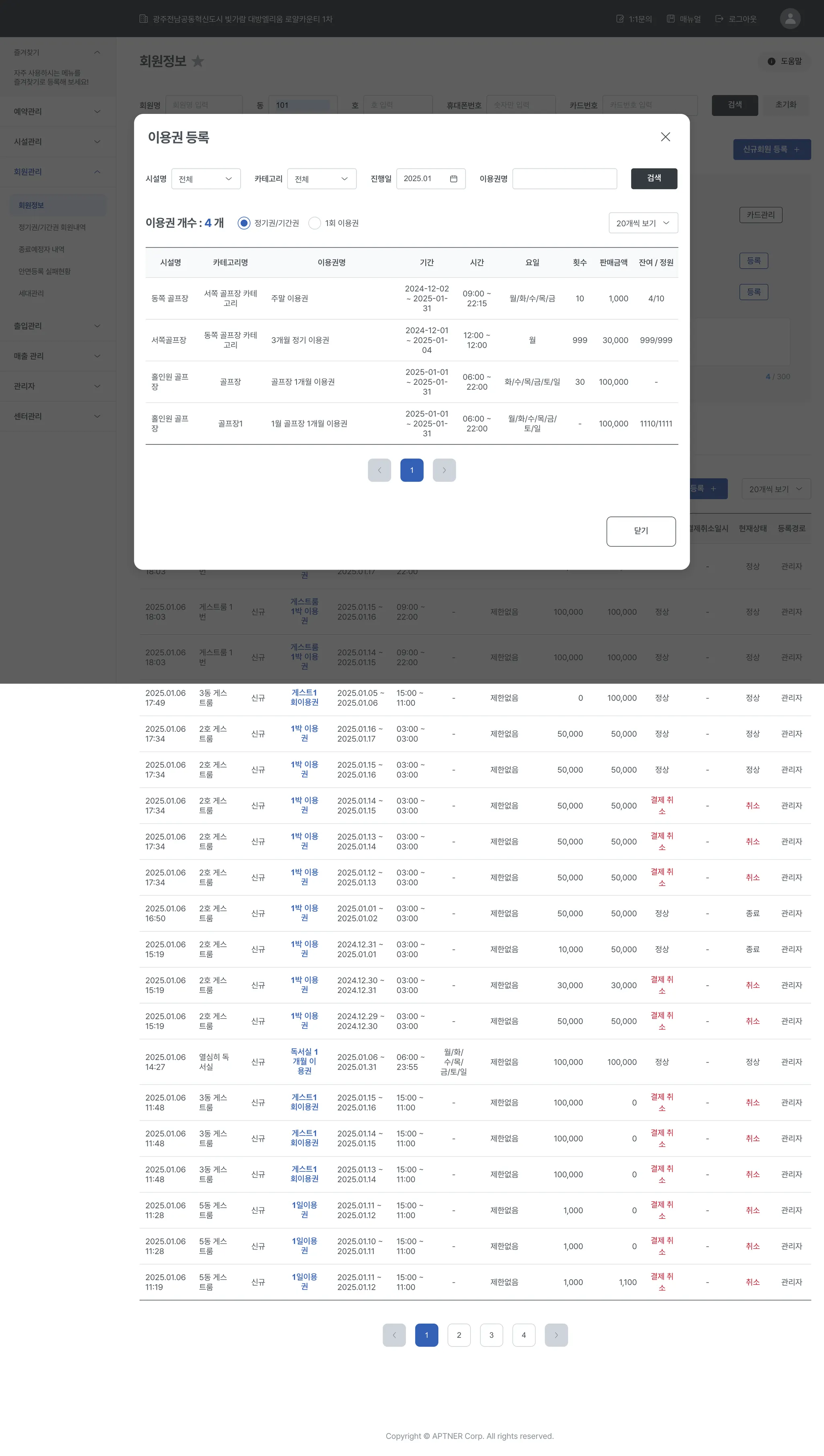 정기권이나 기간권을 결제한 회원내역을 확인할 수 있습니다.