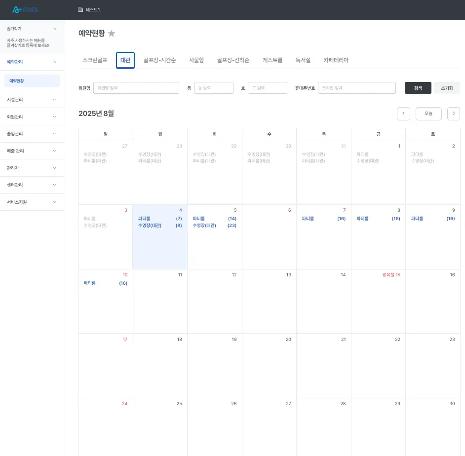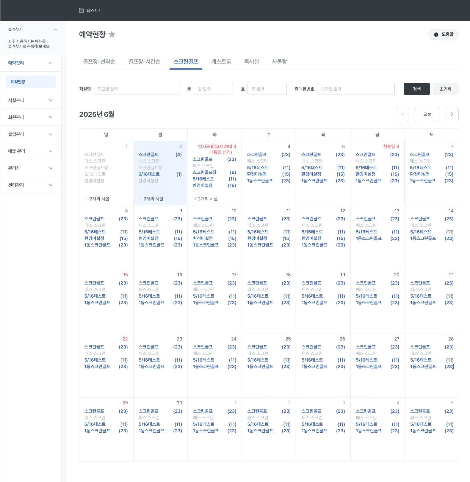 2-3 예약현황 > 스크린골프