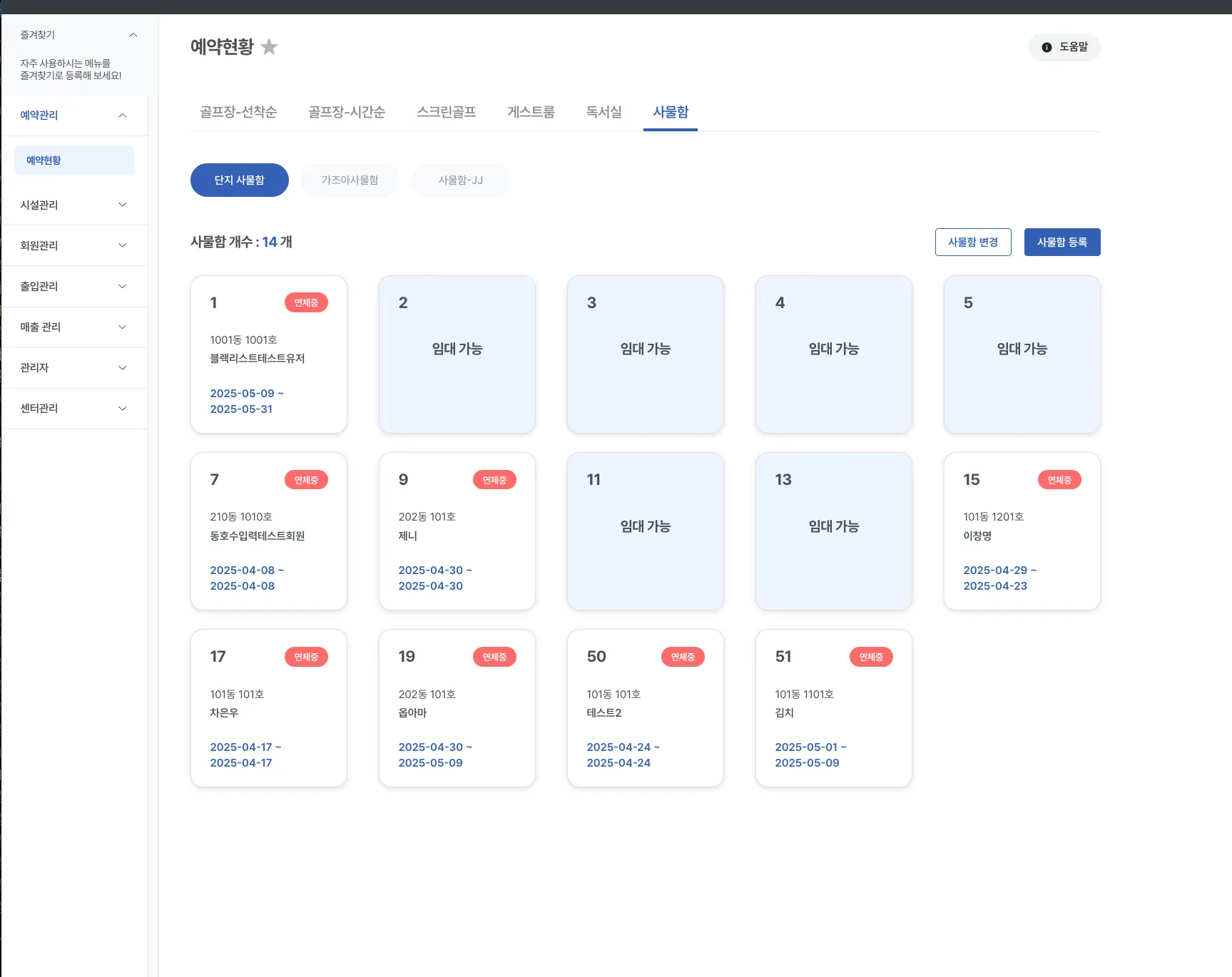사물함 반납하기 / 사물함 번호 변경 / 기간변경이 가능합니다.