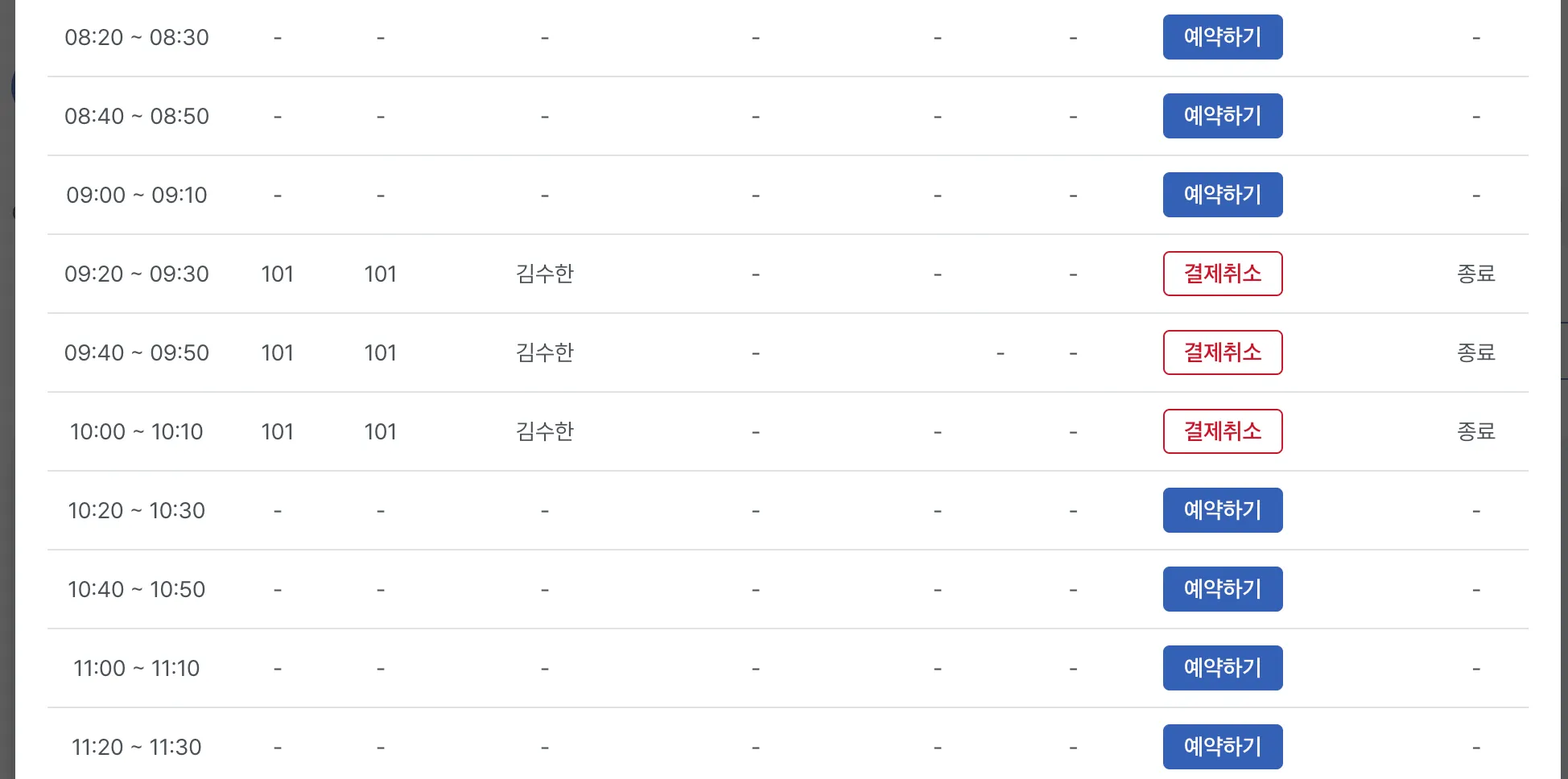 사용자가 없을 경우에는 현재시간+대기시간이 합쳐진 시간부터 예약이 가능합니다.