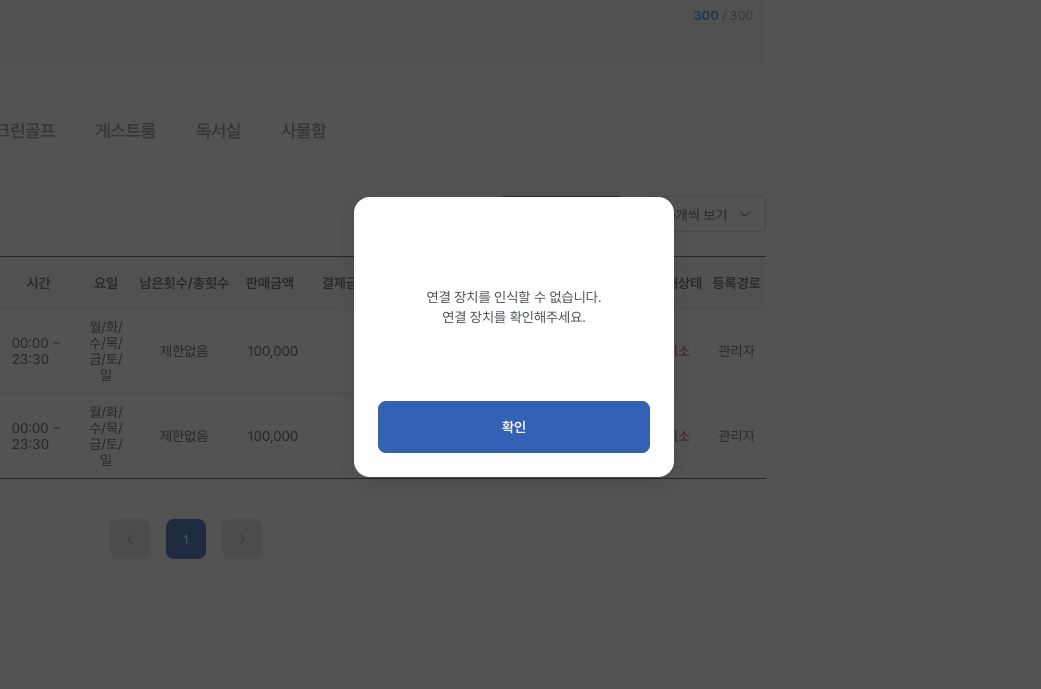 [이용권 등록]버튼 클릭시 이용권 등록 팝업이 표시됩니다.