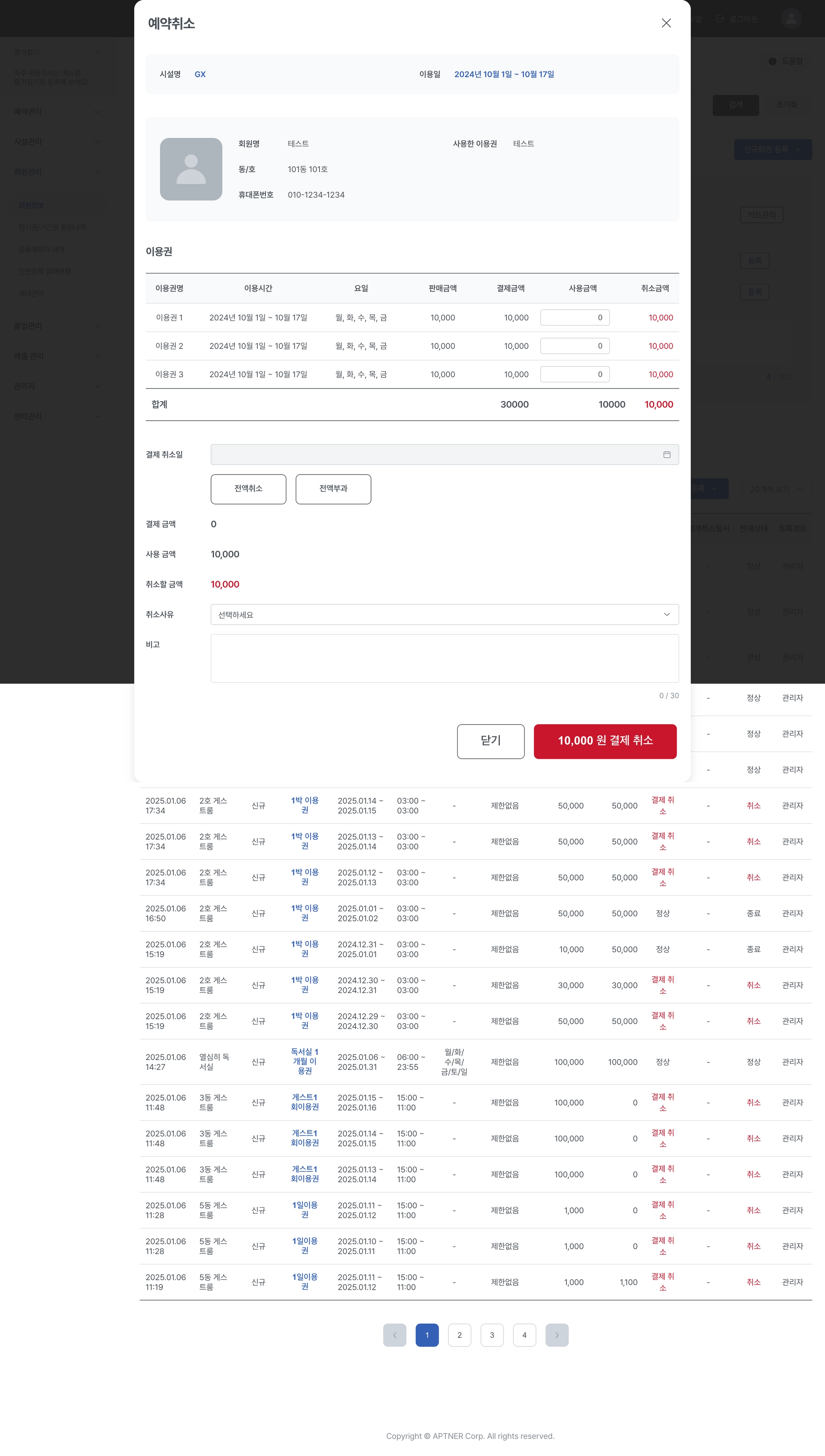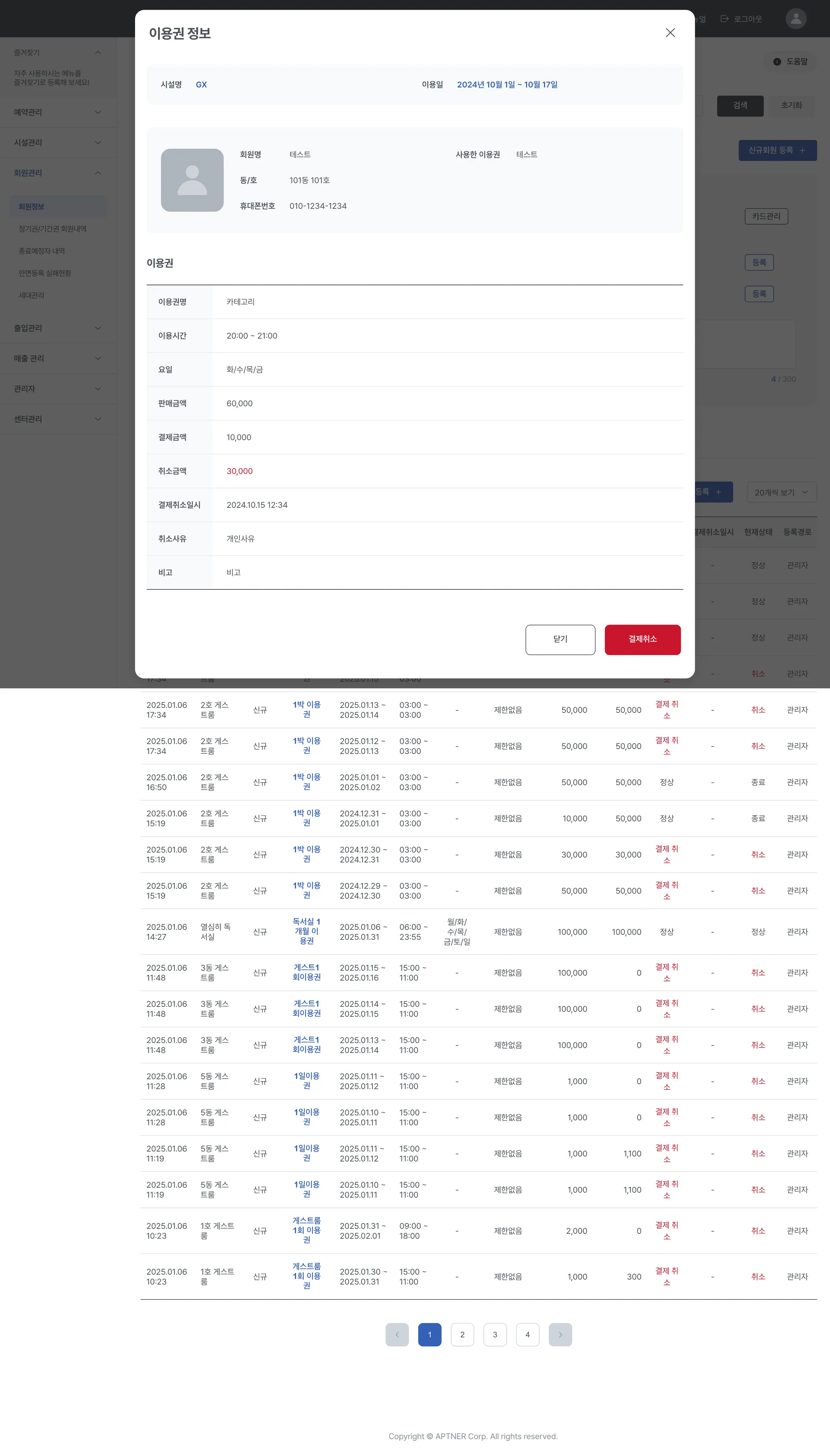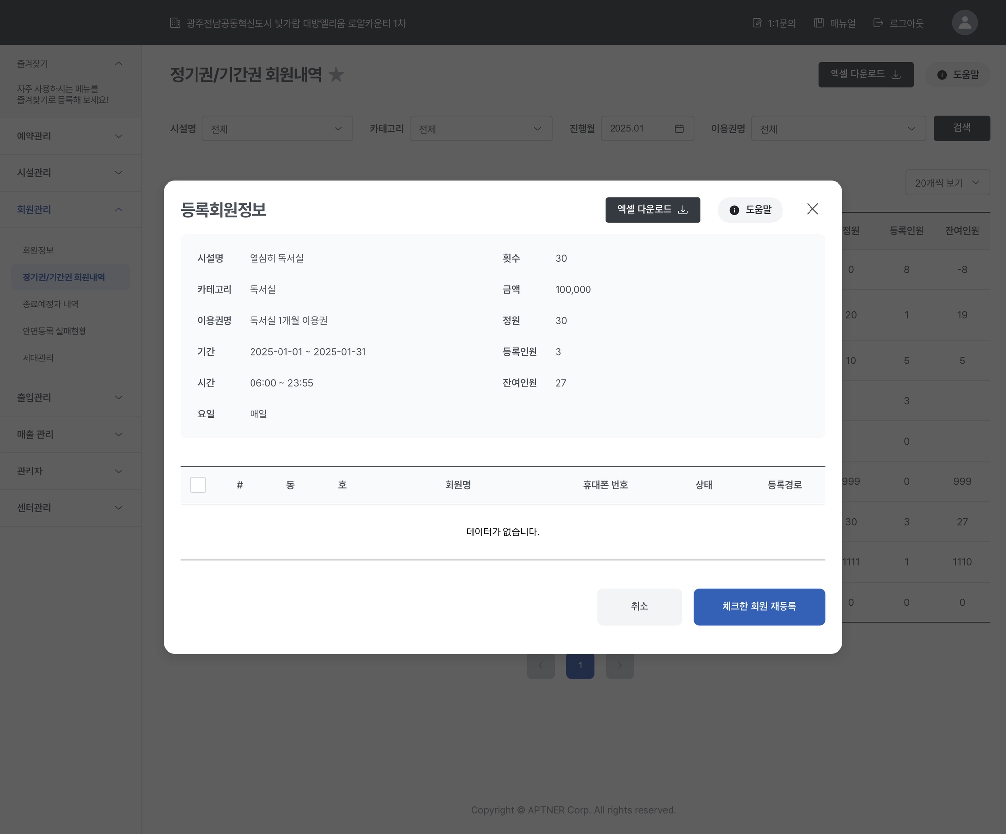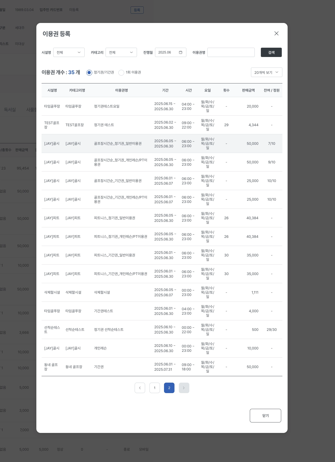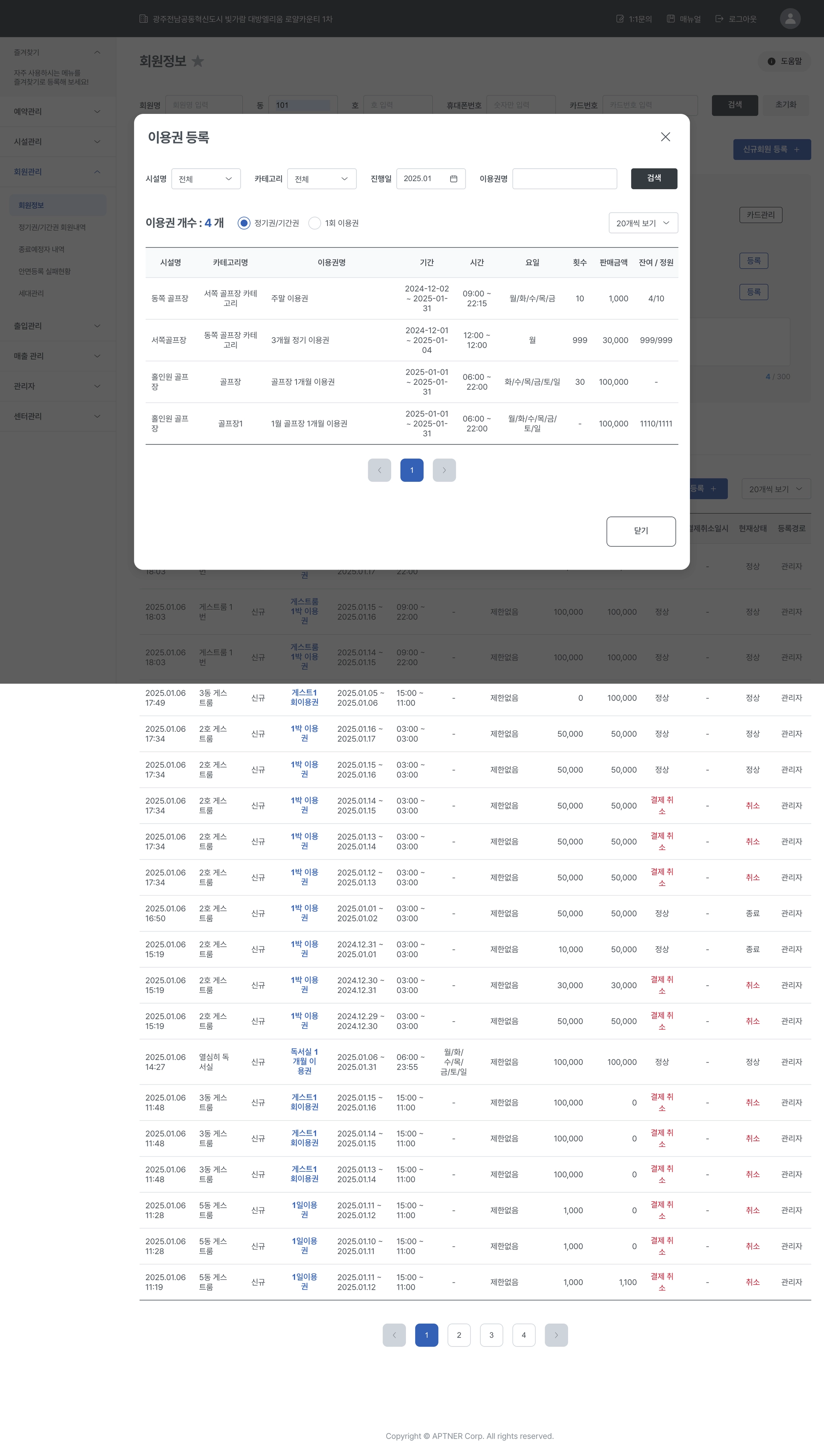 3-2. 회원관리 > 정기권/기간권 회원내역