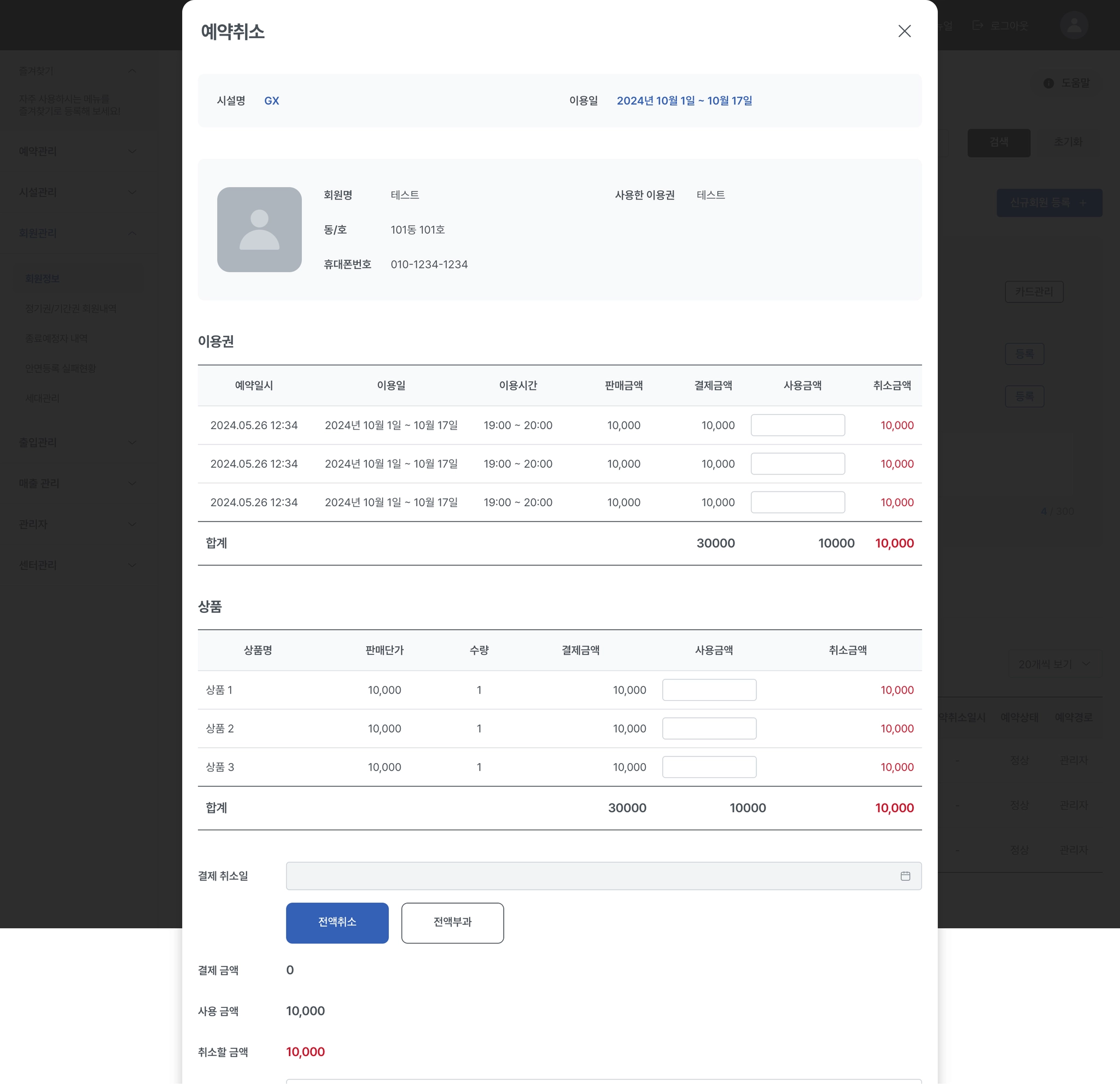 관리자는 회원을 대신하여 이용권을 등록해 줄 수 있습니다.