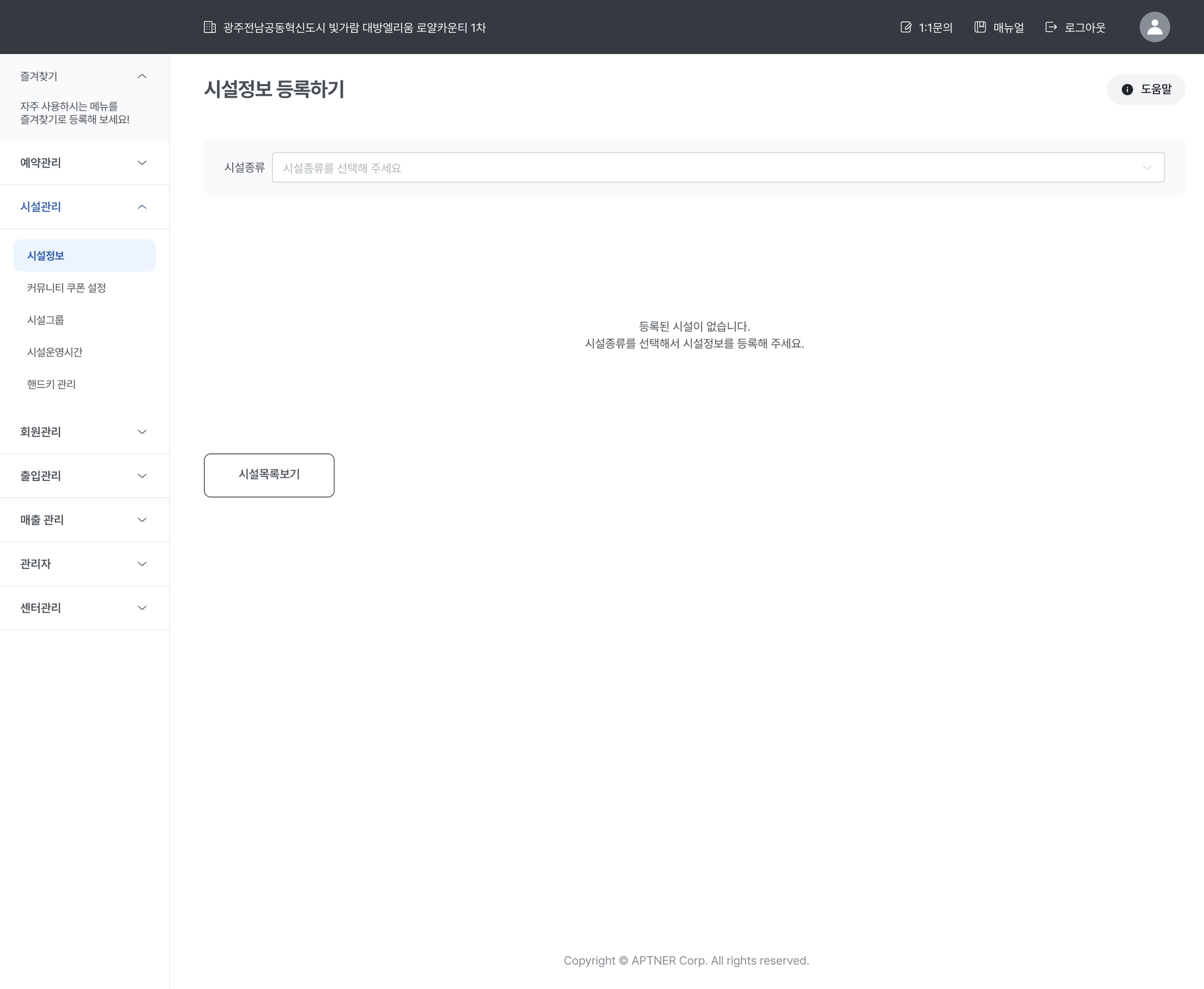 1-1. 시설관리 > 시설정보