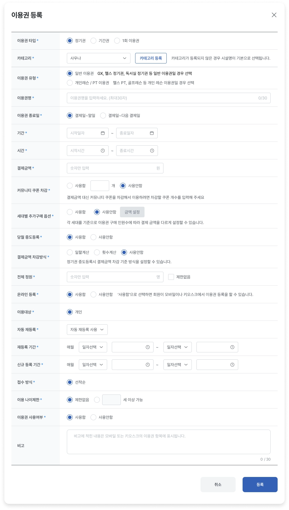 1-1-1-2-1. 이용권 등록 (정기권 / 기간권)