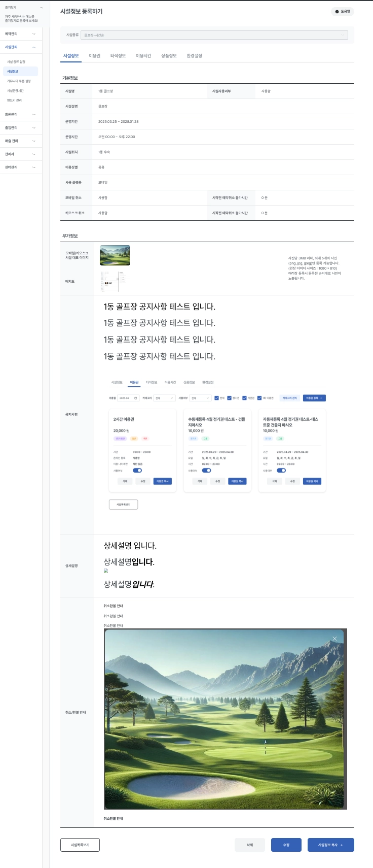 1-1-2. 시설관리 > 시설정보 > 골프장-선착순