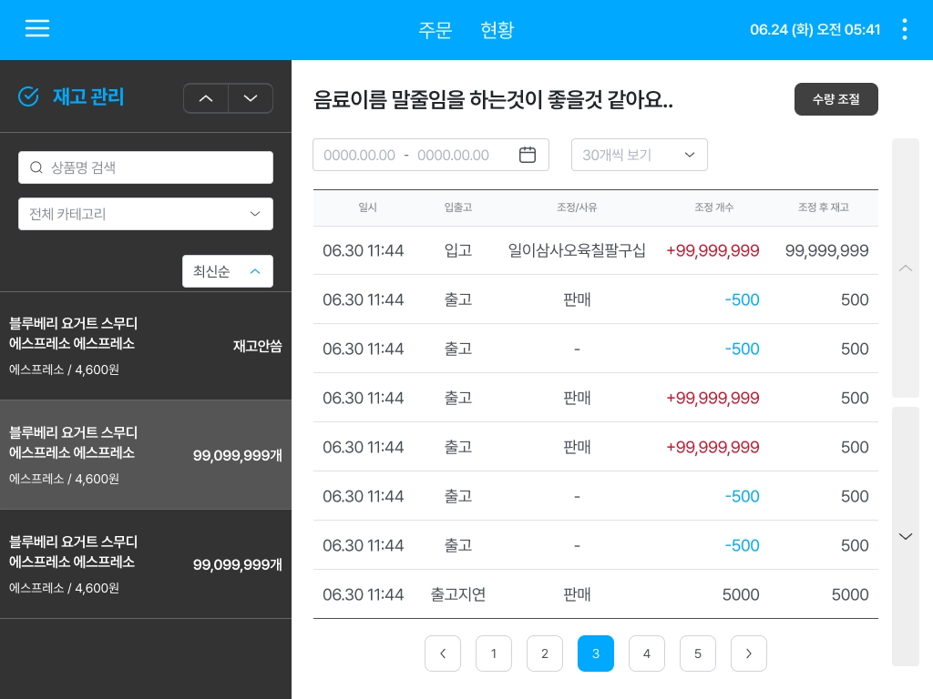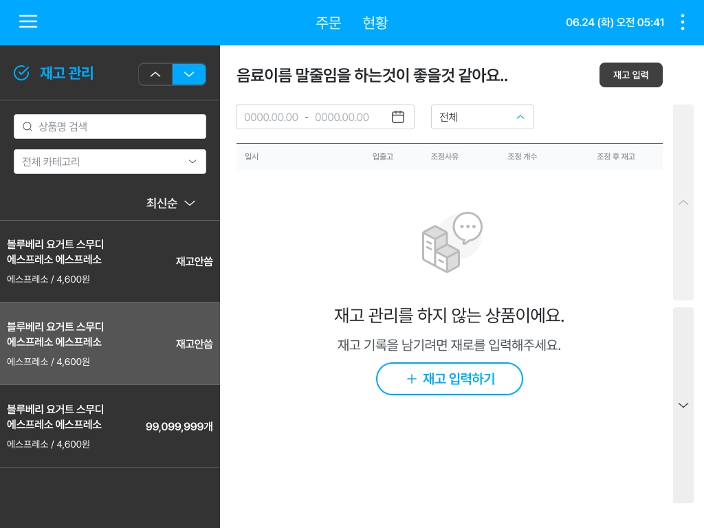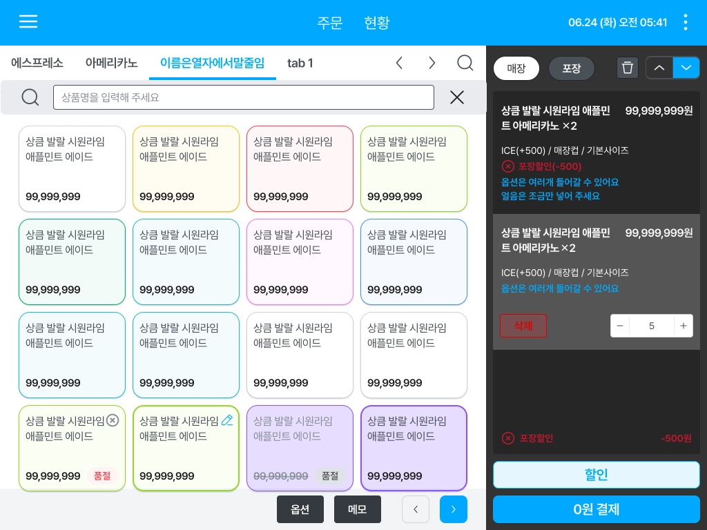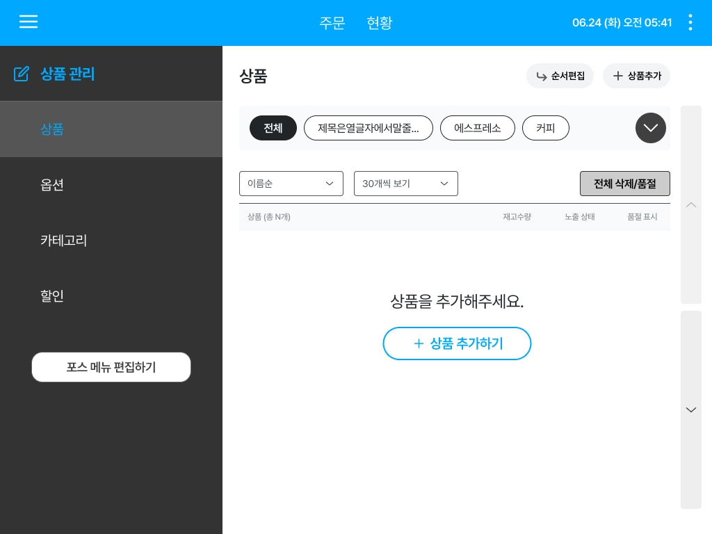삭제된 상품은 주문 화면뿐 아니라 포스 전체에서 완전히 제거됩니다.