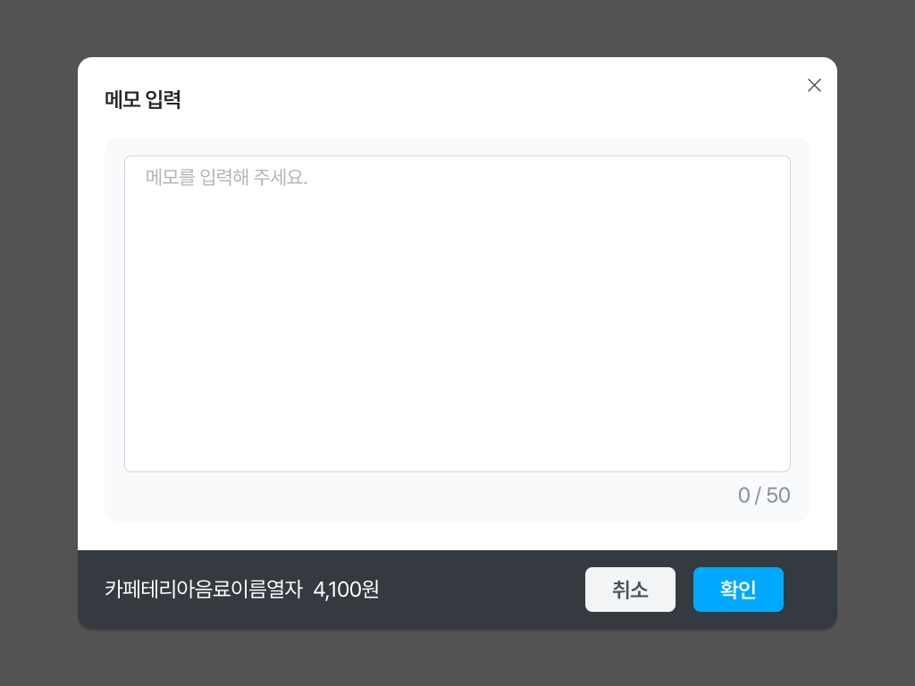 주문 상세 창에서는 총 주문 상품 개수, 주문 금액, 주문 경과 시간이 표시됩니다.
