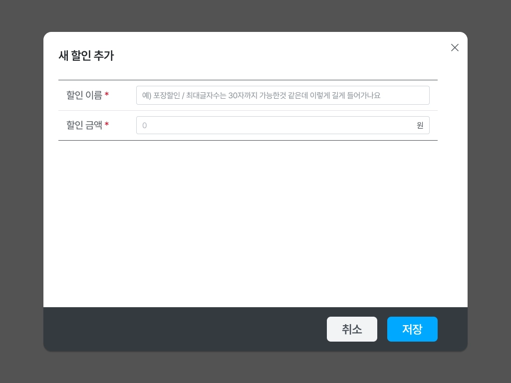 옵션 이름과 가격: 각 옵션의 이름과 추가 금액을 입력합니다.