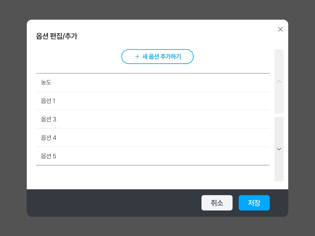 옵션을 새로 추가해야 할 경우 [+ 새 옵션 추가] 버튼을 사용합니다.