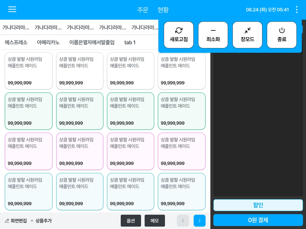 [새로고침] : 포스 프로그램을 새로고침합니다.