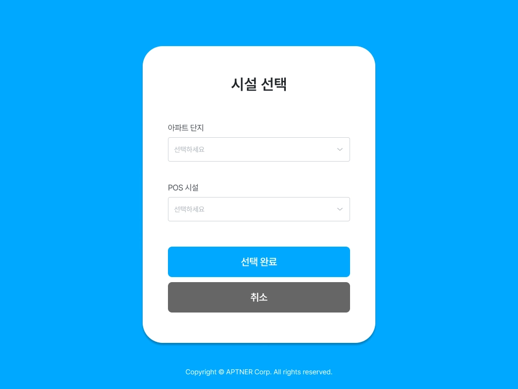 아파트 단지에 속해있는 POS시설 중 진입하고자 하는 시설을 선택한 뒤 [선택완료] 버튼을 클릭해 주세요.
