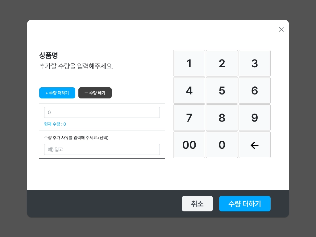 버튼을 클릭하면 상품 추가 모달이 열리며, 새로운 상품을 바로 등록할 수 있습니다.