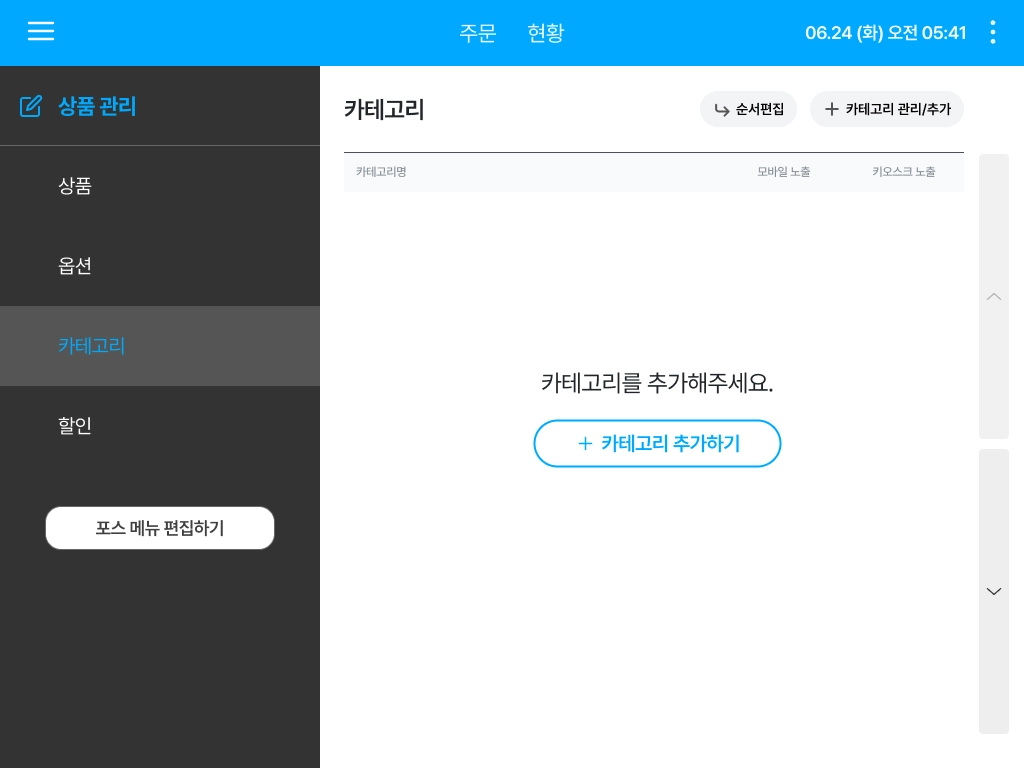 상단에 가까울수록 포스, 키오스크, 모바일의 카테고리에서 가장 좌측에 위치하게 됩니다.