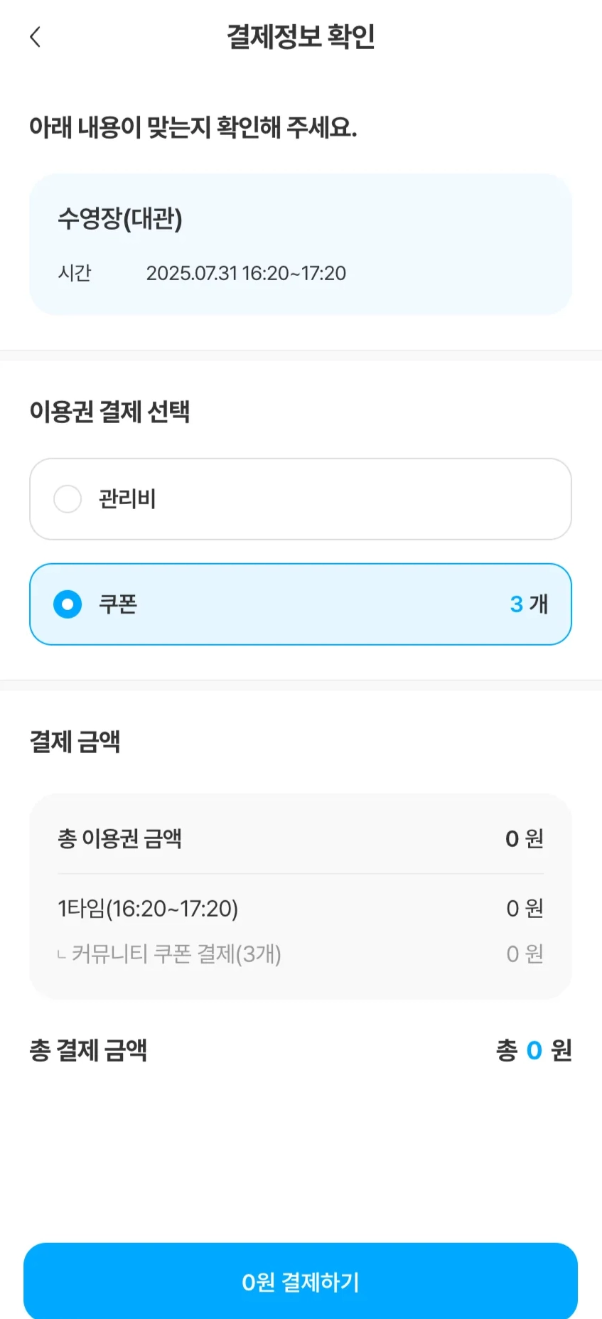 커뮤니티 쿠폰을 지원하는 단지의 시설인 경우, 쿠폰 적용을 통해 할인 혜택을 받을 수 있습니다.