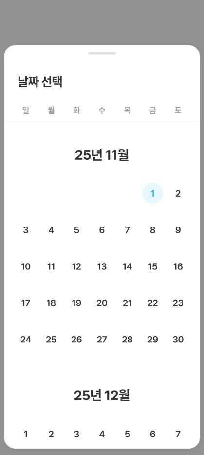 상단 월 좌우 버튼을 통해 다른 월로 이동할 수 있습니다.