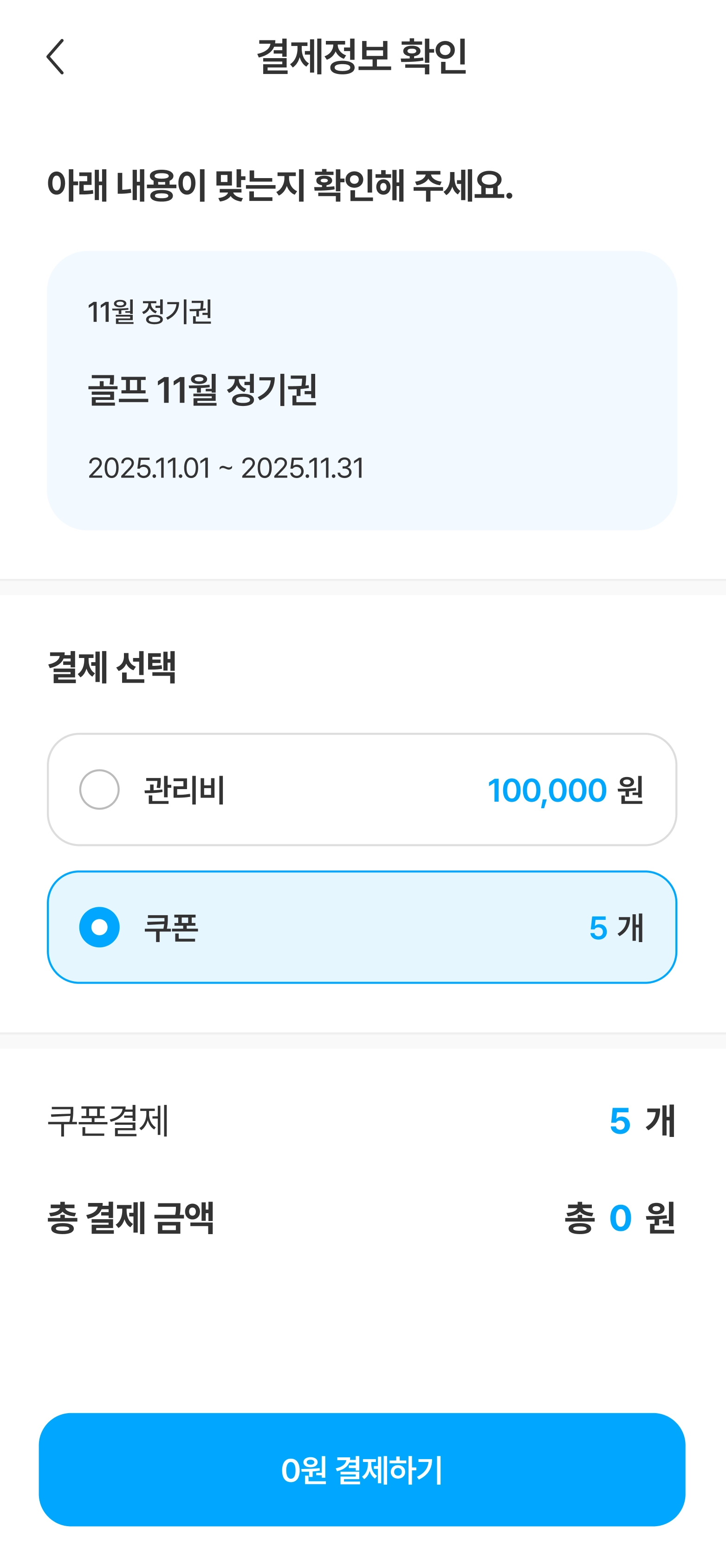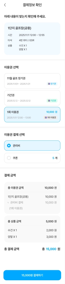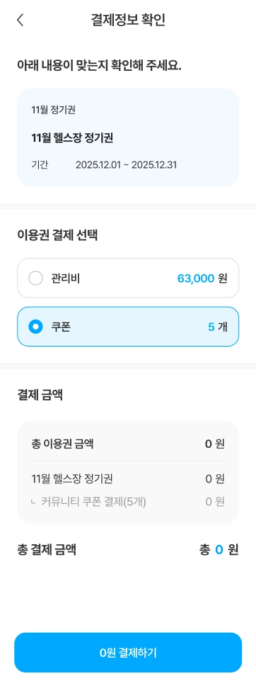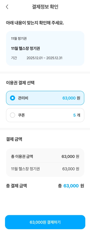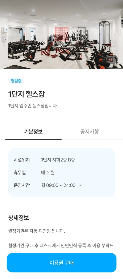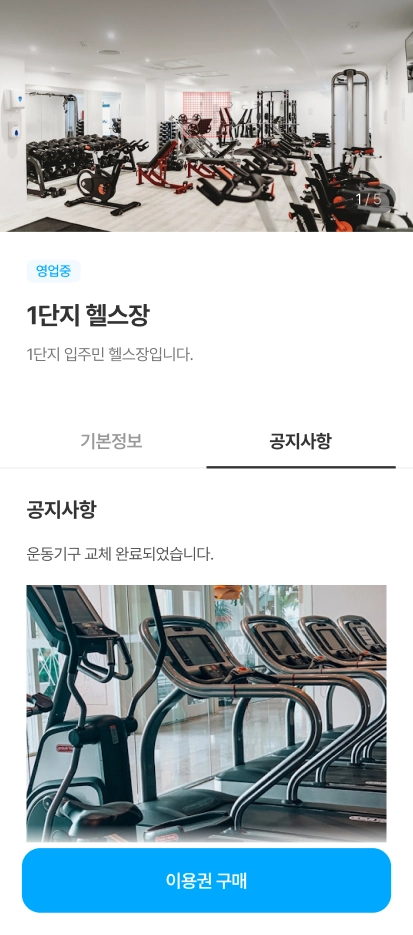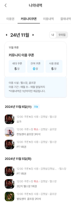 보유하고 있는 커뮤니티 시설 이용권을 확인할 수 있습니다.