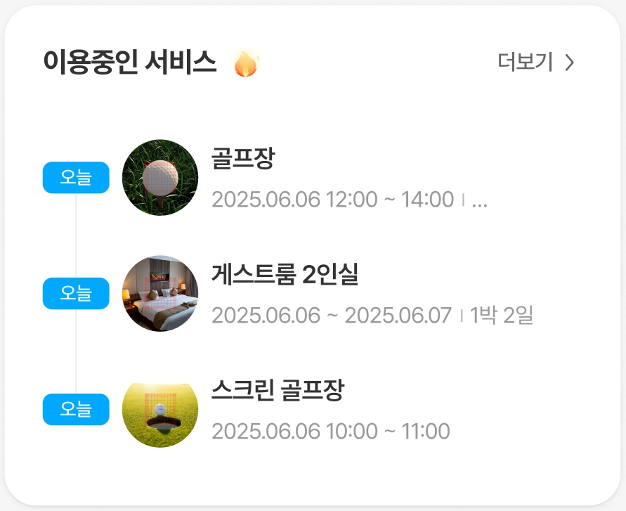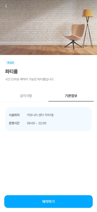 본인이 예약한 커뮤니티 시설 중 당일 예약 현황을 확인할 수 있습니다.