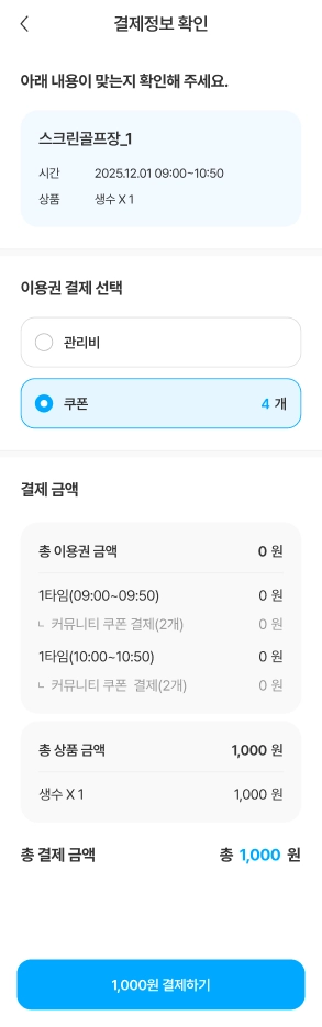 이용 가능한 시설은 커뮤니티 관리자가 허용한 시설만 표시되며, 해당 시설에서만 쿠폰 사용이 가능합니다.