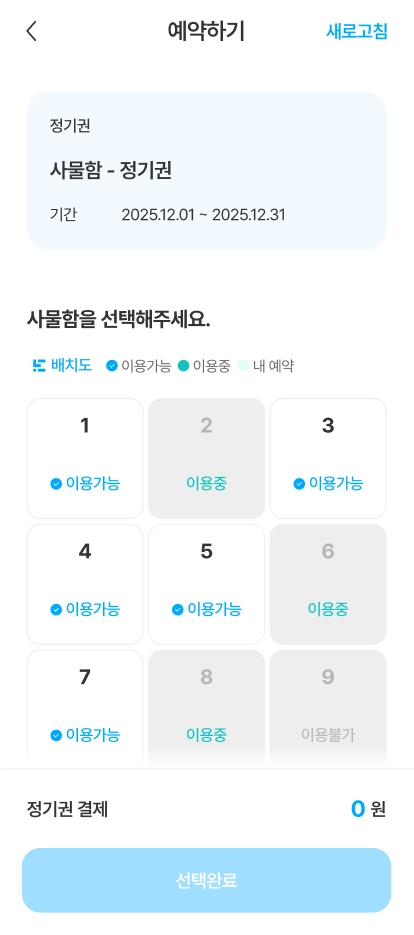 독서실, 사물함 등 장기간 예약 내역은 표기되지 않습니다.