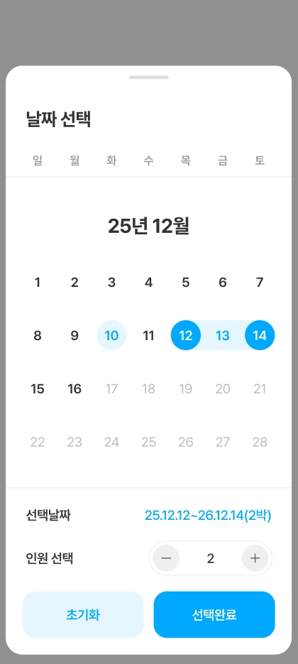 달력에서 특정 일자를 선택하면, 해당 일자의 상세 이용 내역이 아래에 노출됩니다.