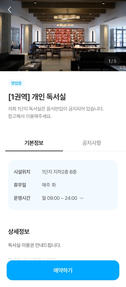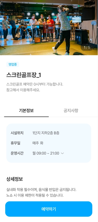 이미지는 관리자에서 등록한 시설대표이미지이며, 시설대표이미지를 등록하지 않을 시 기본이미지가 노출됩니다.