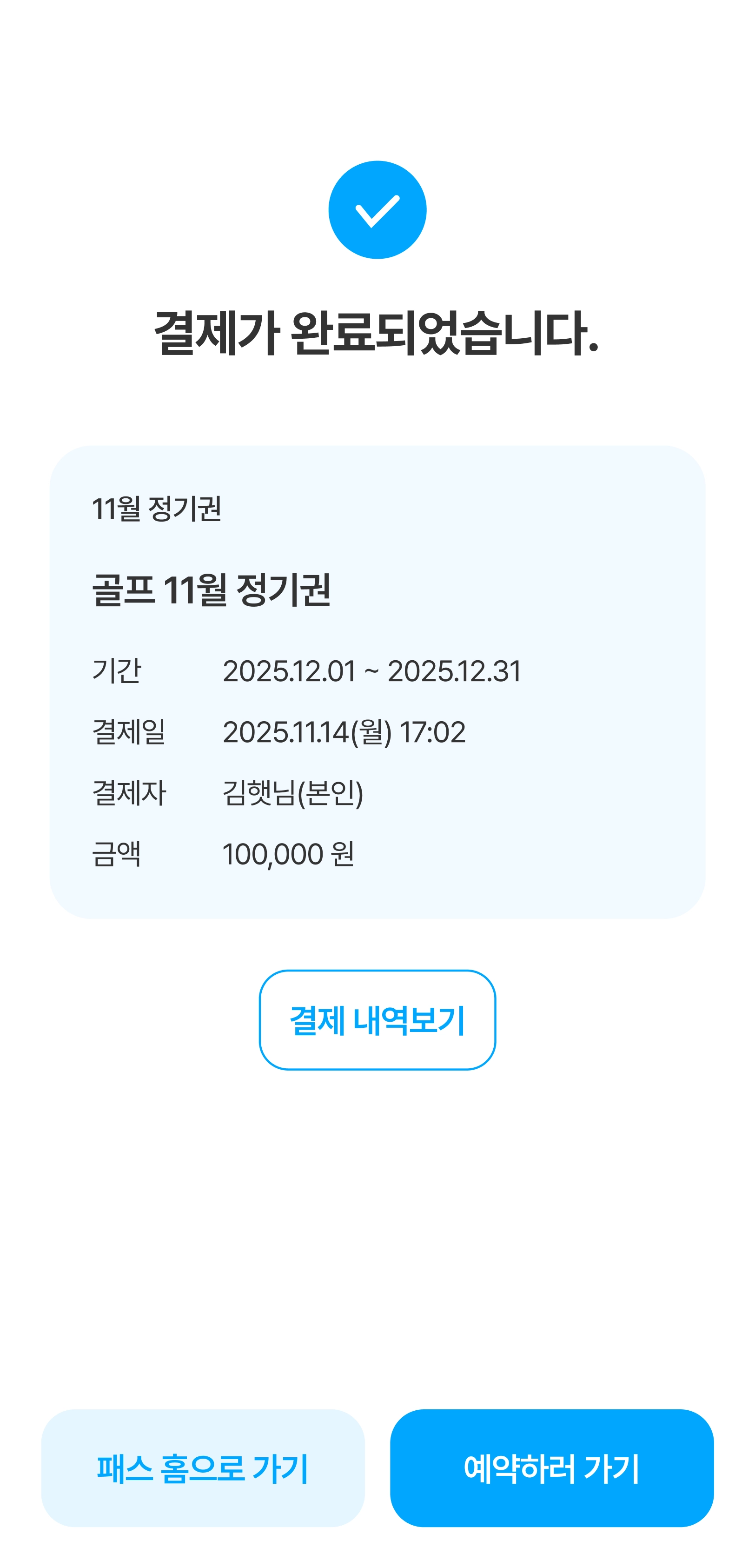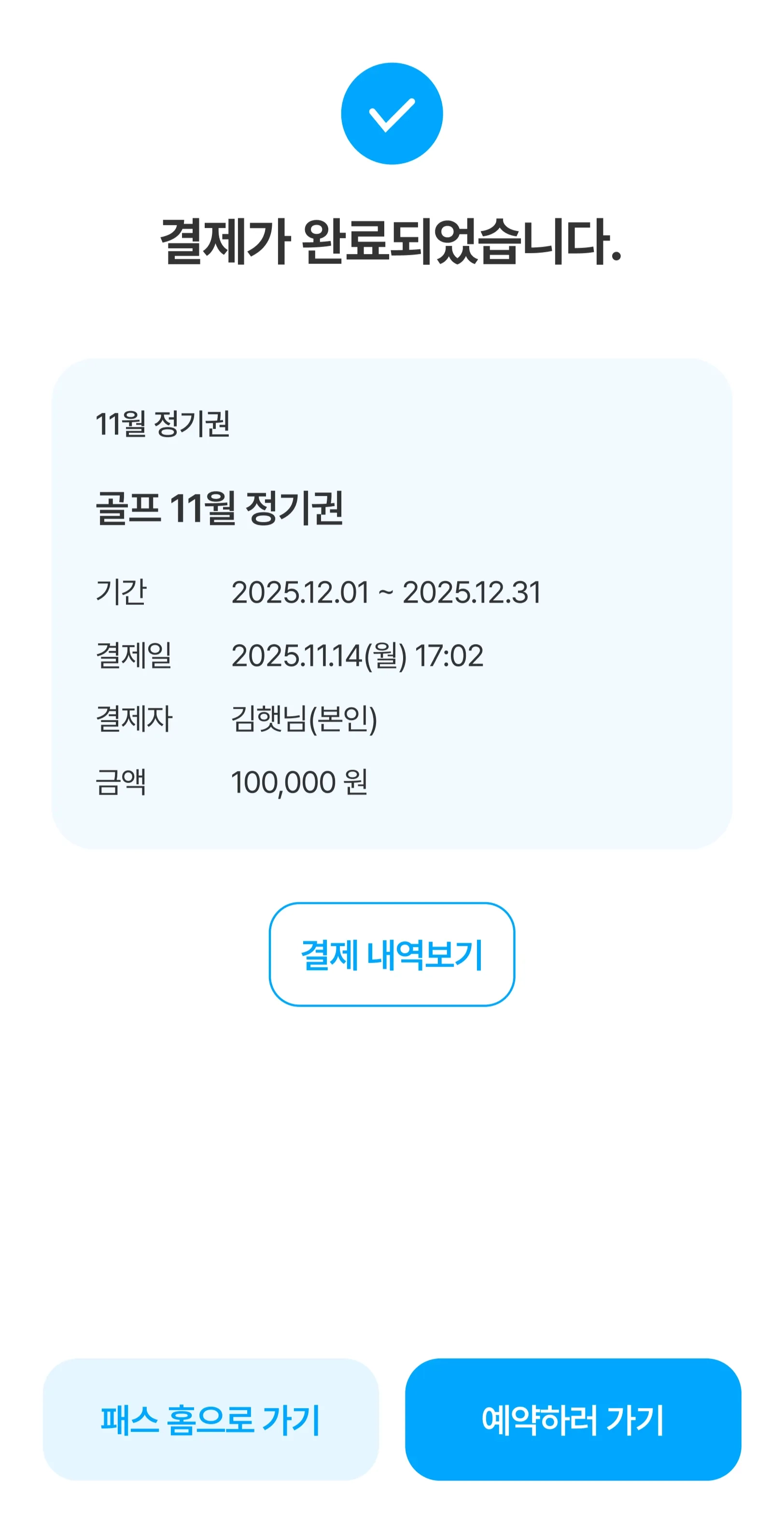 결제내역을 선택하면, 해당 건의 상세 정보를 확인할 수 있습니다.