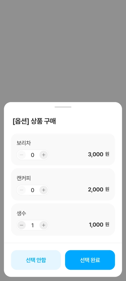 상품 목록에서 상품을 선택하면 상세 정보를 확인할 수 있으며, 관리자가 설정한 옵션을 선택할 수 있습니다.