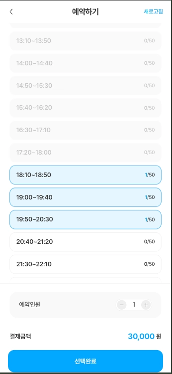 [더보기] 버튼 클릭 시, 전체 예약 내역을 일별로 확인할 수 있습니다.