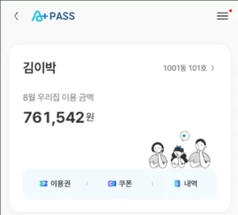 본인 및 세대(우리집)의 이용권, 쿠폰, 내역을 확인 할 수 있습니다.