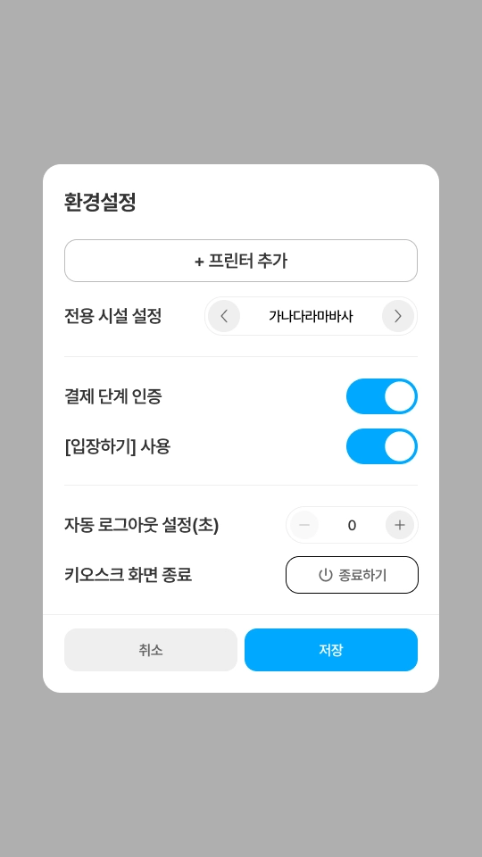 키오스크 전용 설정