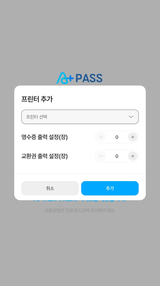 주문서, 영수증 등의 출력이 필요한 시설의 경우 프린터를 설정할 수 있습니다.