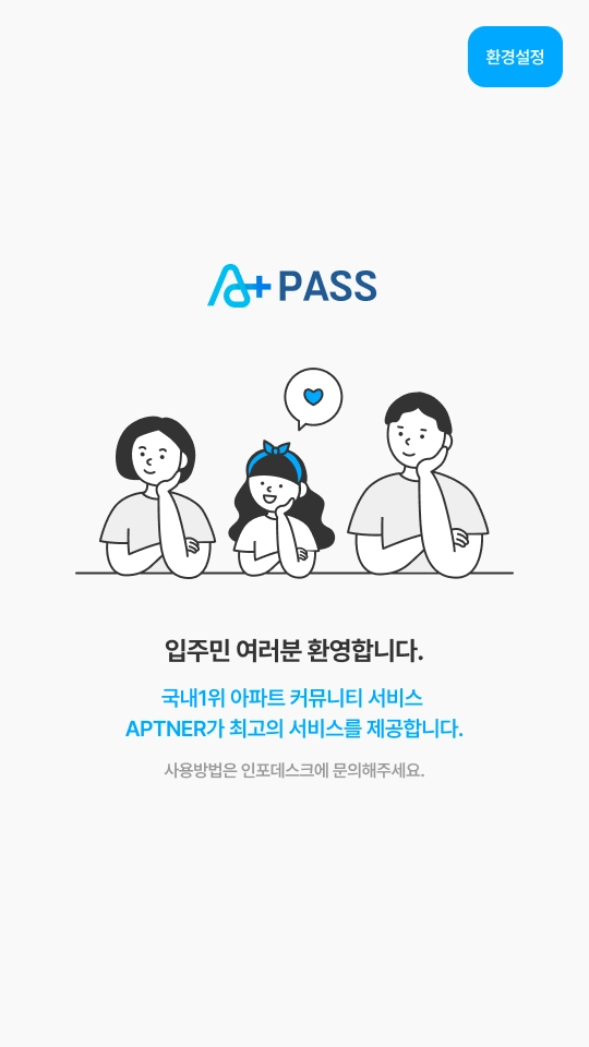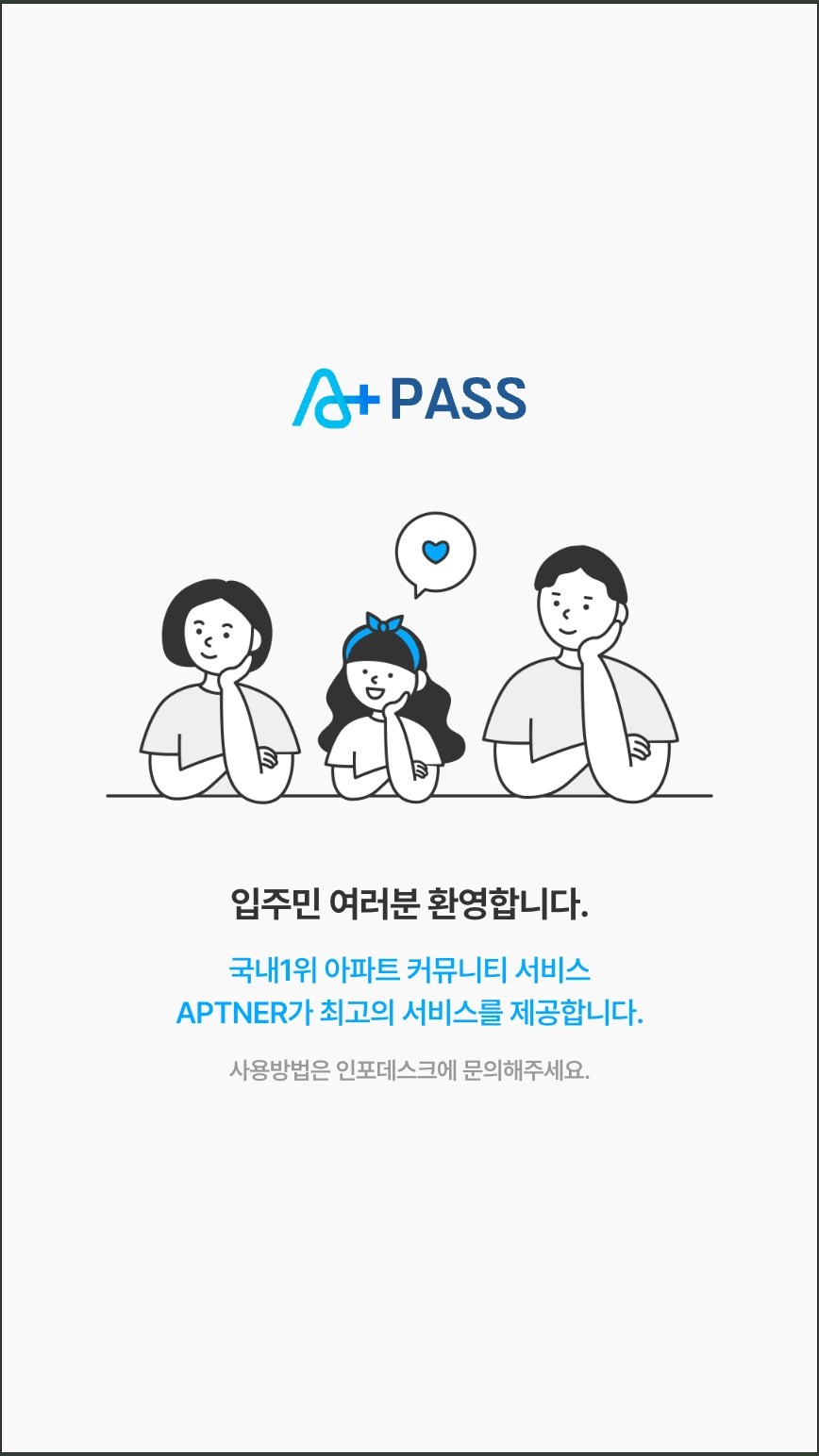 아파트너 PASS와 게이트가 연동되지 않은 단지의 경우, 메인 화면에서 [입장하기] 버튼의 소요가 없기 때문에 숨길 수 있습니다.