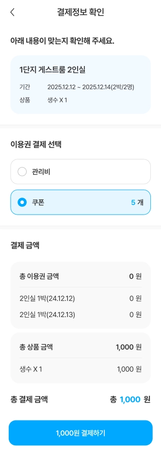 쿠폰 사용 페이지에서 사용할 쿠폰 개수를 선택한 후 [결제하기] 버튼을 누르면 즉시 결제가 진행됩니다.