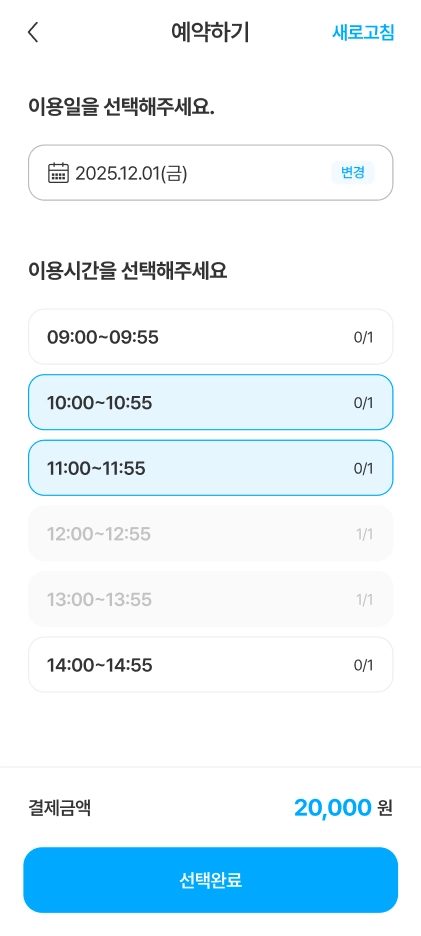 시설의 예약 정책에 따라 예약 가능한 일정은 다를 수 있습니다.