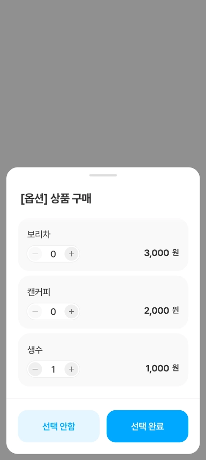 원하는 이용시간을 선택한 후 필요시 추가 상품을 구매할 수 있습니다.