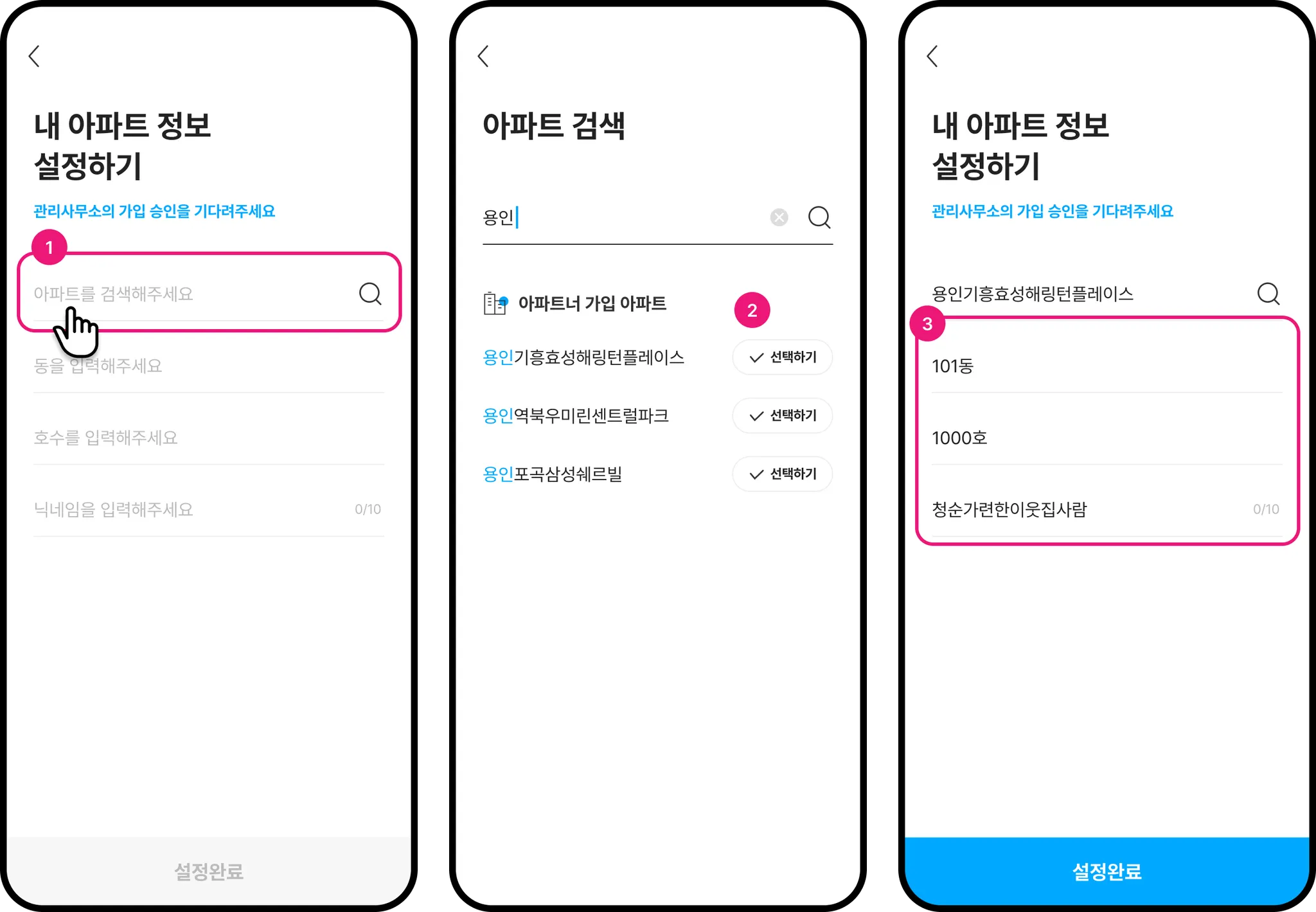 아파트너 가입 아파트중에서 내 아파트를 선택해 주세요.