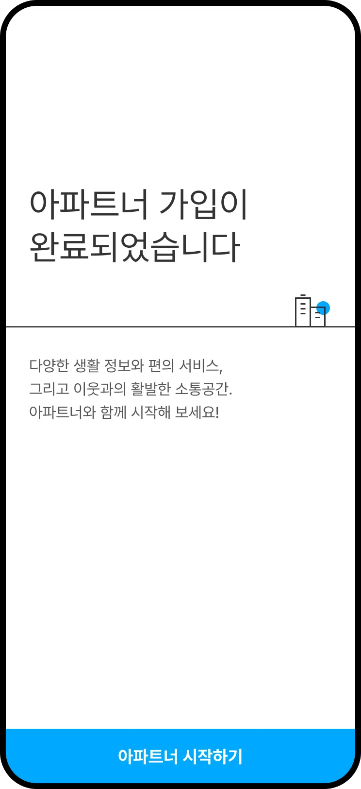 [아파트너 시작하기] 버튼을 누르면 내 아파트 정보 설정 페이지로 이동합니다.