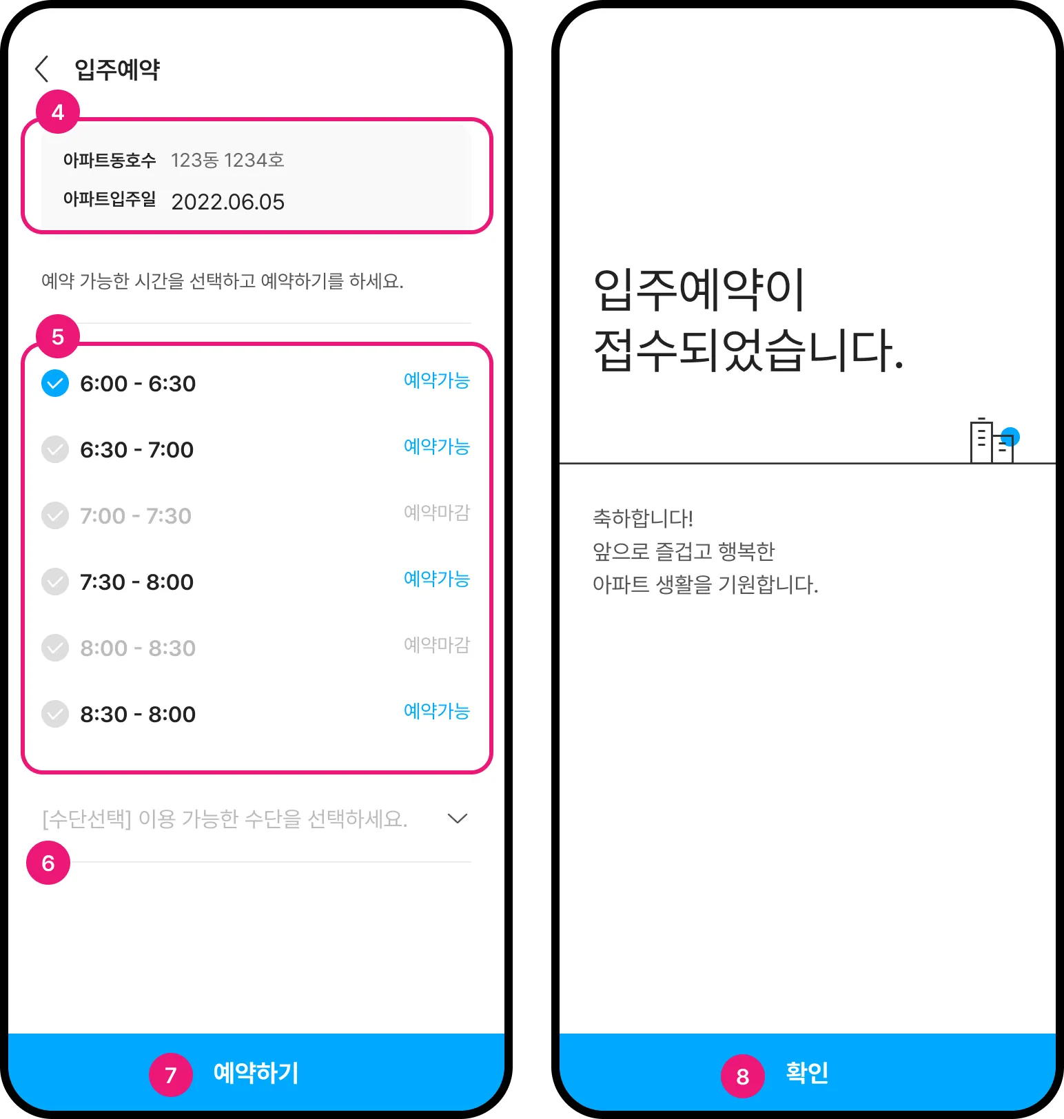 분양단지에 입주하는 입주민은 입주예약 서비스를 이용할 수 있습니다.