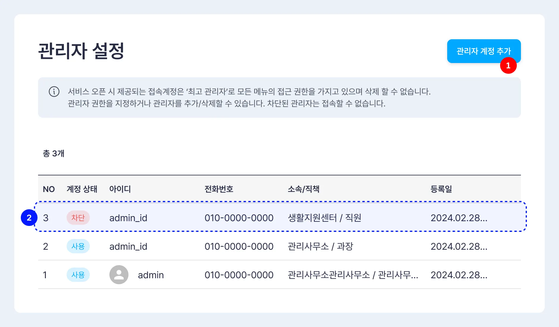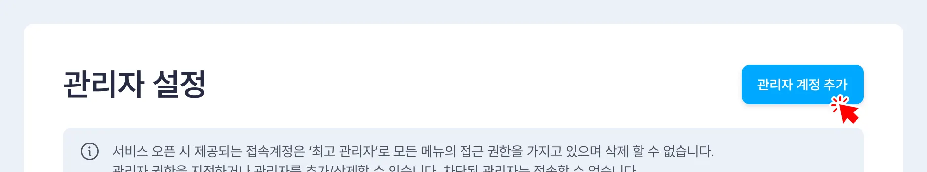 관리자 설정 화면 상단의 [관리자 계정 추가] 버튼을 클릭합니다.